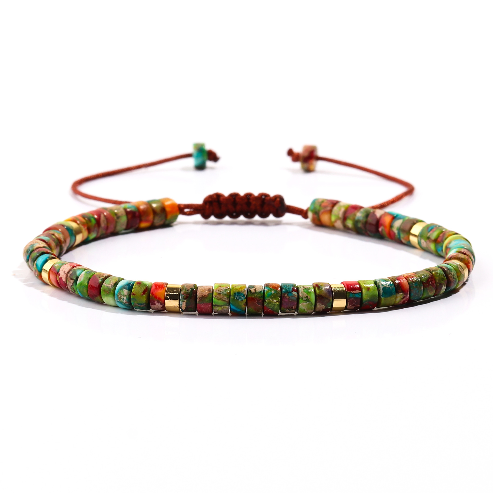Beach Women's Gift Handmade Beaded Bohemian Green Dongling Tiger Eye Stone Turquoise Cylindrical Flat Bead Women's Bracelet