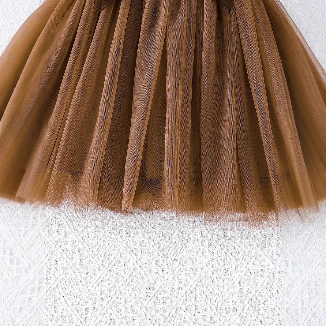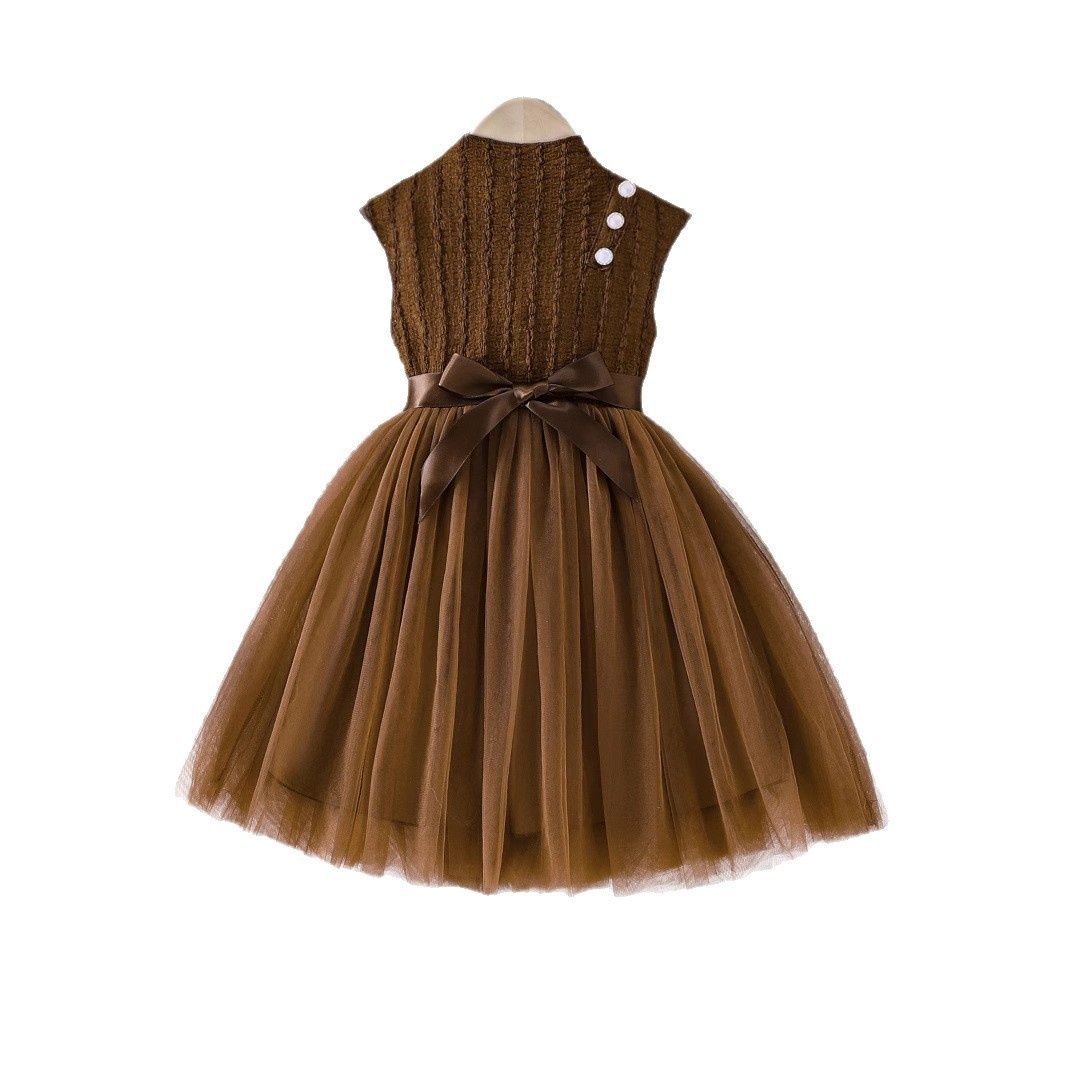 Children's Sleeveless Mesh Dress Girl's Organza Puff Dress With Belt Birthday Party Dress 3-8 Years Old