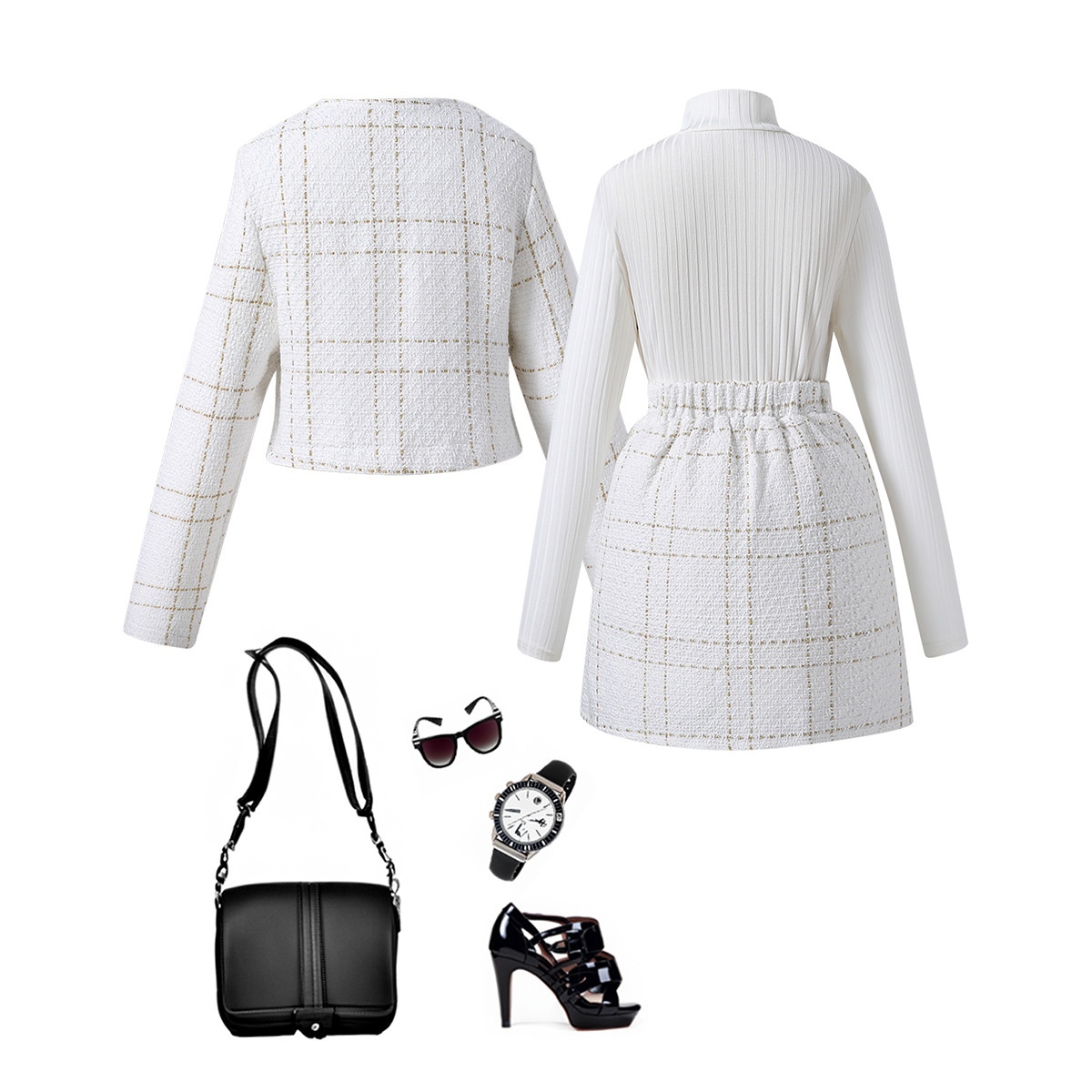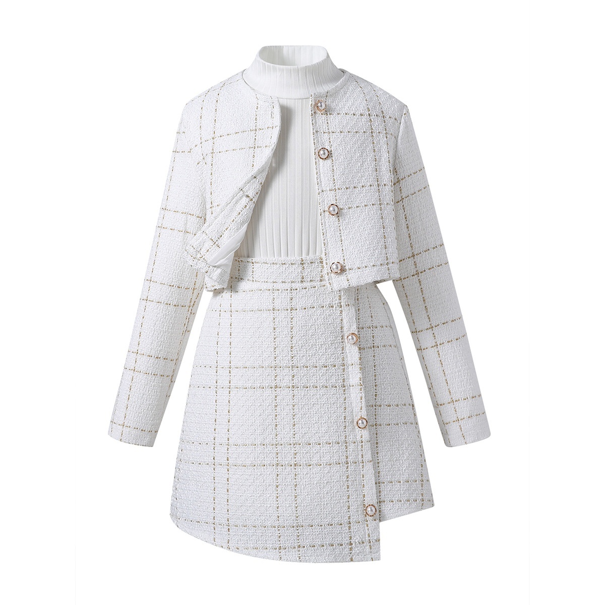 Girls' Suit Spring Chanel Style Plaid Irregular Skirt Girls' Three-piece European And American Children's Clothing