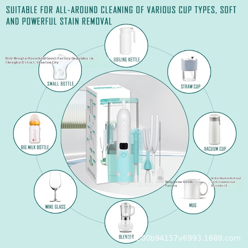 Baby Bottle Brush Electric Cup Brush Drying Rack Automatic Ultraviolet Sterilization Multifunctional Pacifier Cleaning Brush