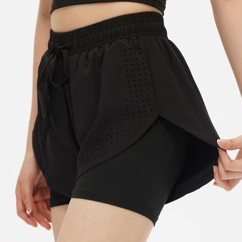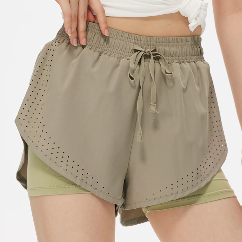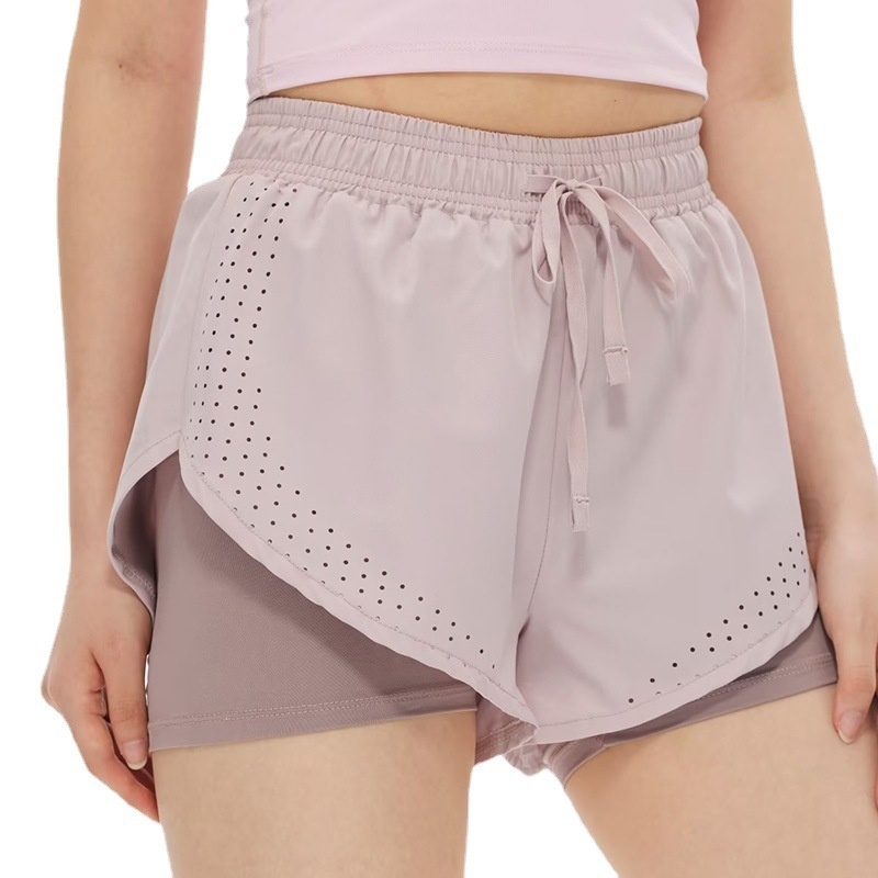 Professional Running Shorts Women's Quick-drying Sports Pants Fake Two-piece Fitness Badminton Anti-light Yoga Three-part Pants