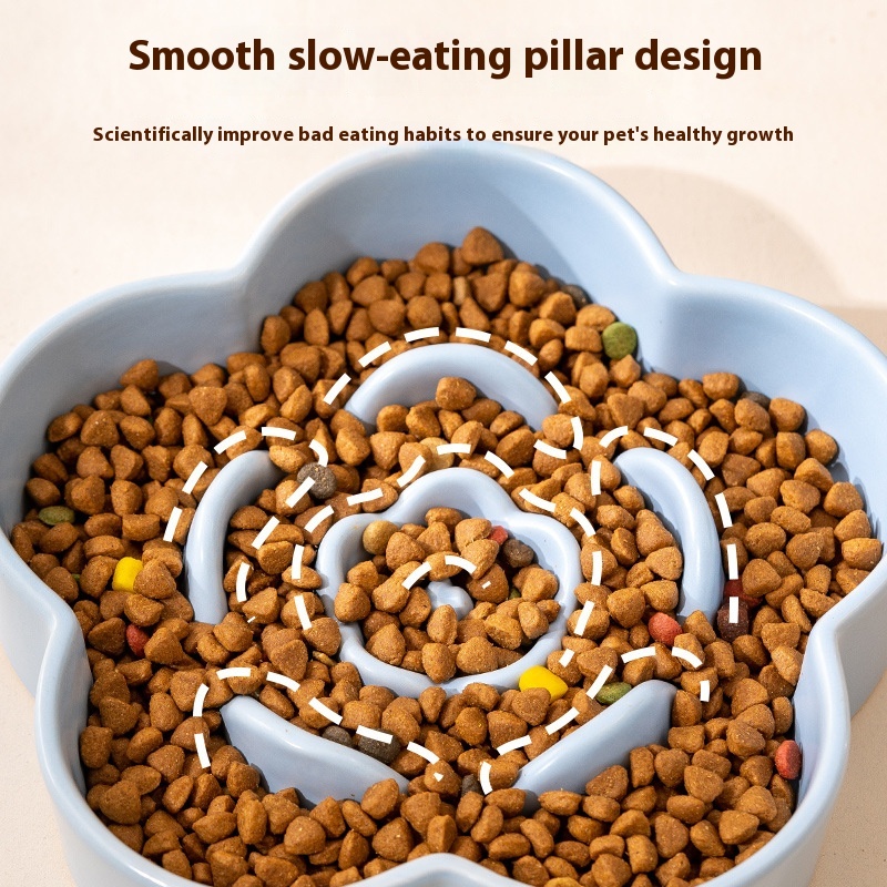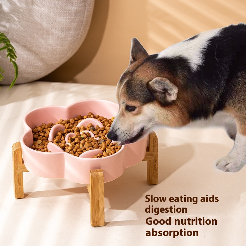 Ceramic Slow Food Bowl Dog Bowl Anti-choke Medium And Large Dog Food Bowl Cat Bowl With Wooden Rack Pet Bowl Pet Drinking Bowl