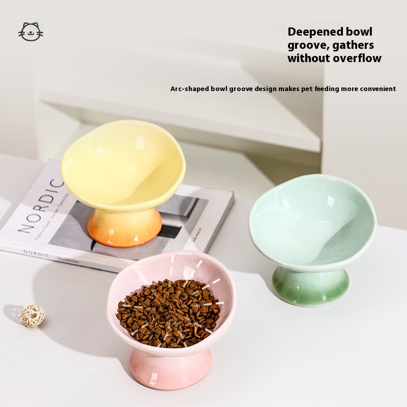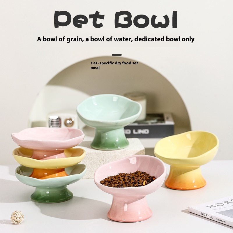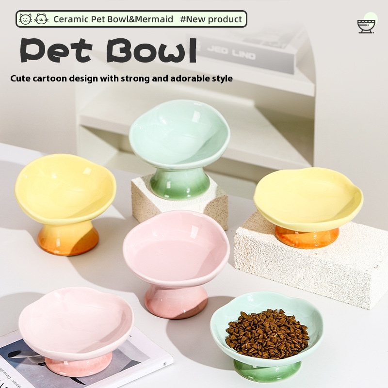 Cat Bowl Ceramic Petals Cat Food Basin Cat Rice Bowl Cat Food Bowl High Foot Dog Bowl Anti-knock Drinking Bowl Pet Rice