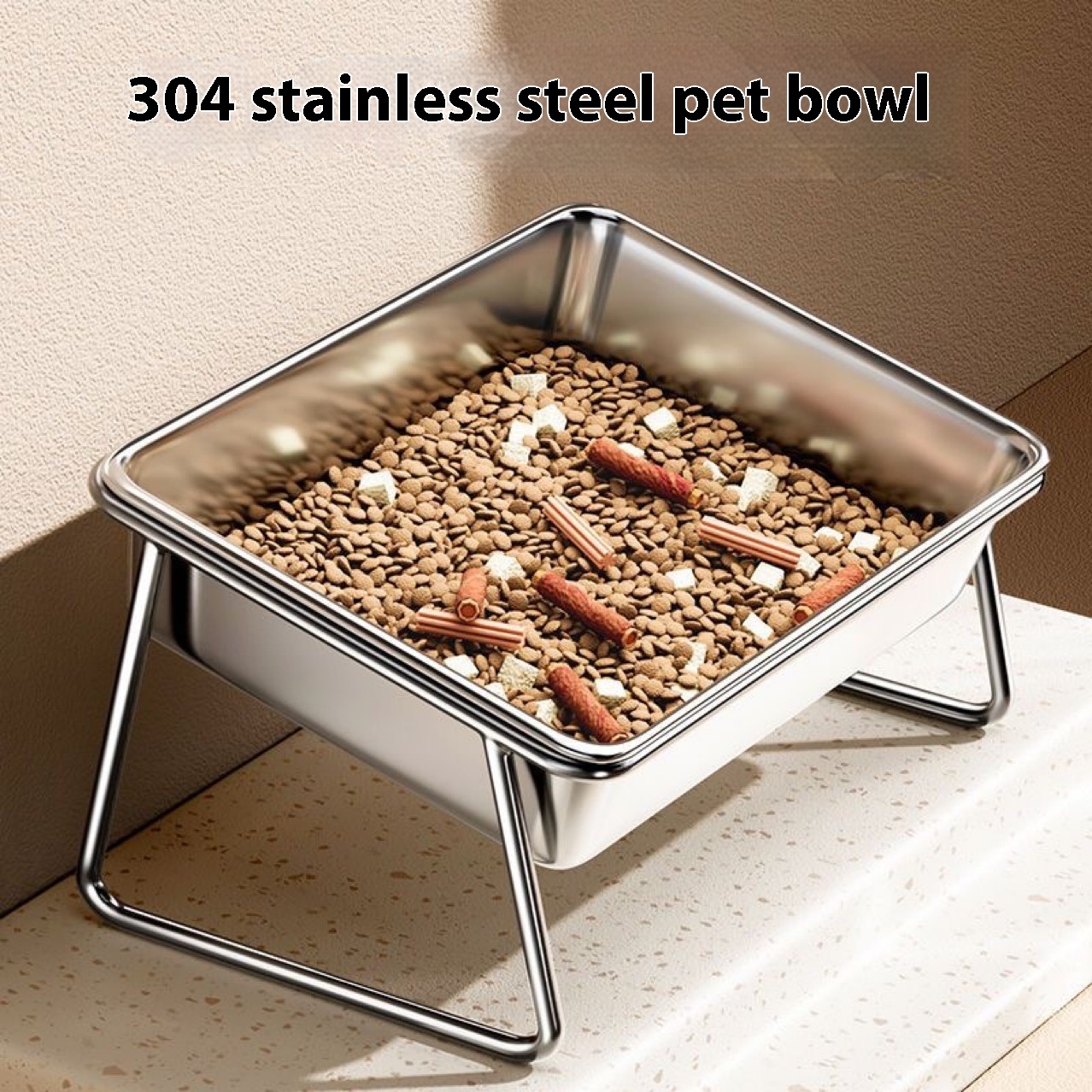 Stainless Steel Dog Basin Dog Bowl Pet Bowl Water Bowl Dog Drinking Water Heightening Rack Neck Protection Stainless Steel Rice Bowl Cat Food Cat Bowl