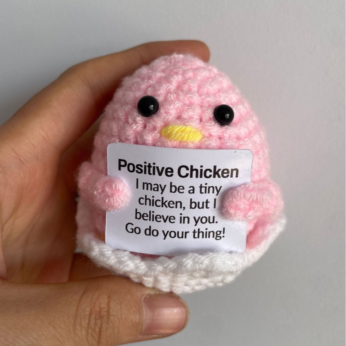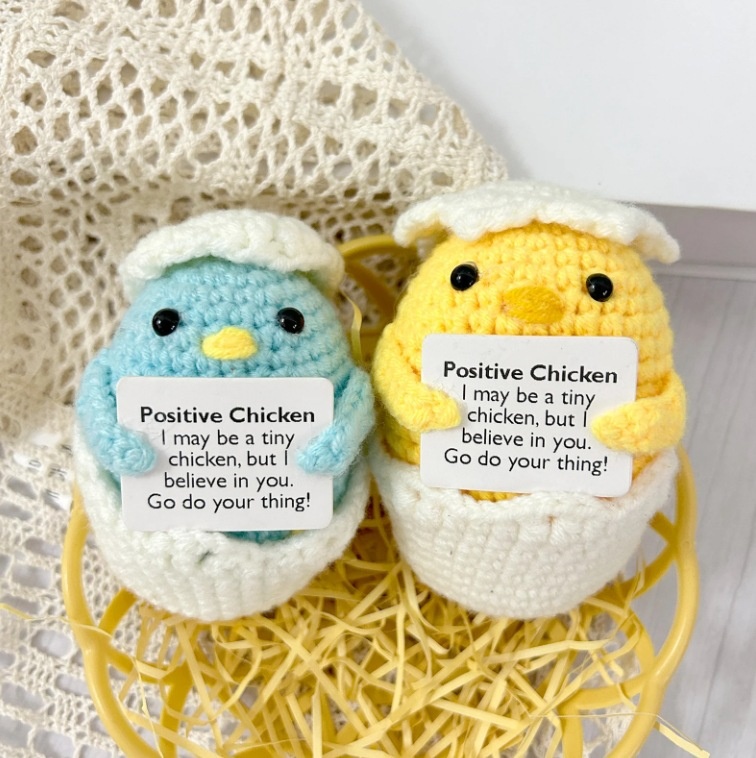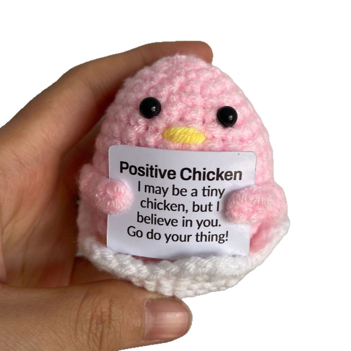 Explosions Shell Small Powder Chicken Holding Card Series Positive Energy Pure Hand-crocheted Finished Decompression Wool Doll