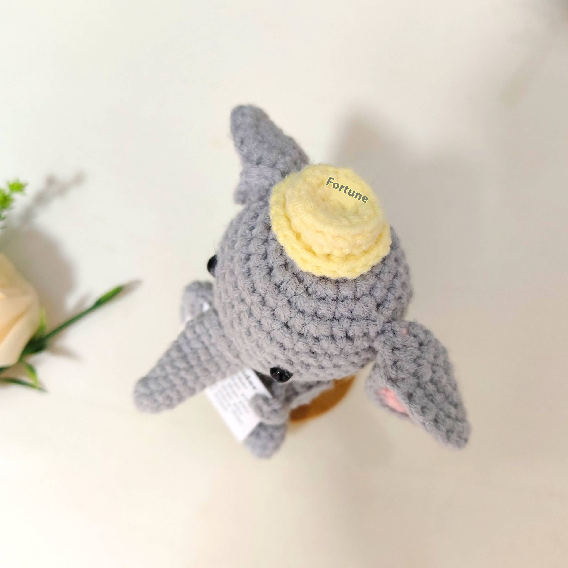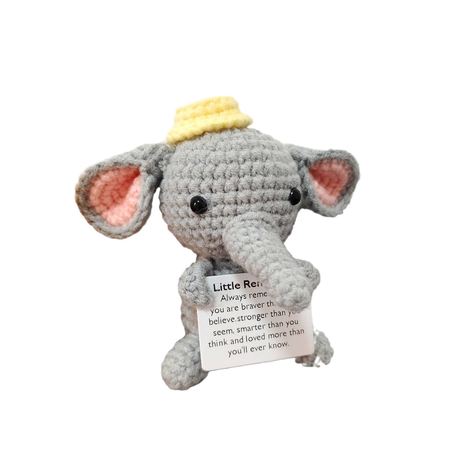 Explosions Cartoon Gray Elephant Holding Card Series Positive Energy Pure Hand-crocheted Finished Decompressed Wool Doll