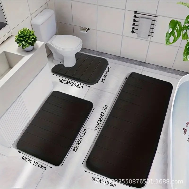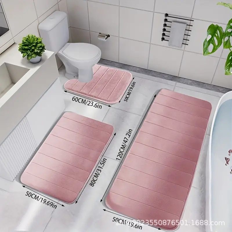 TE Explosions MU Quilted Toilet Non-slip Mat Carpet Absorbent Foot Mat Coral Fleece Bathroom Three-piece Set