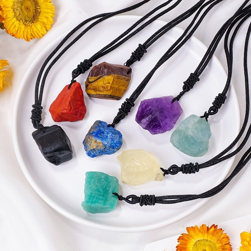 Selling Natural Crystal Original Stone Pendant Pink Crystal Amethyst Yellow Crystal Original Stone Necklace Jewelry Pendant