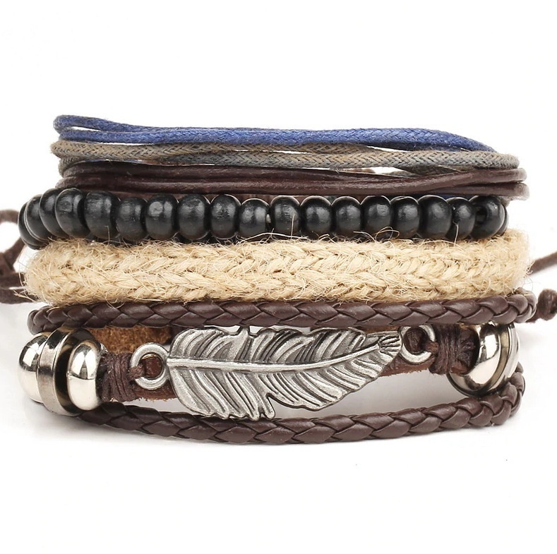 Hot Woven Suit Combination Vintage Bracelet Alloy Leaf Beaded Jewelry