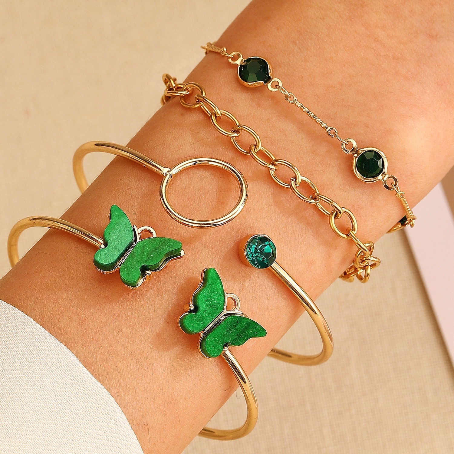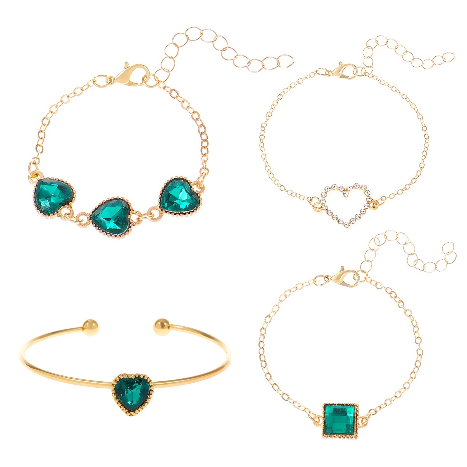 Bracelet Suit Combination Style European And American Creative Design Diamond-embedded Geometric Bracelet Bracelet Four-piece Set