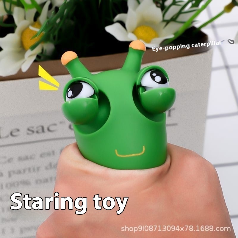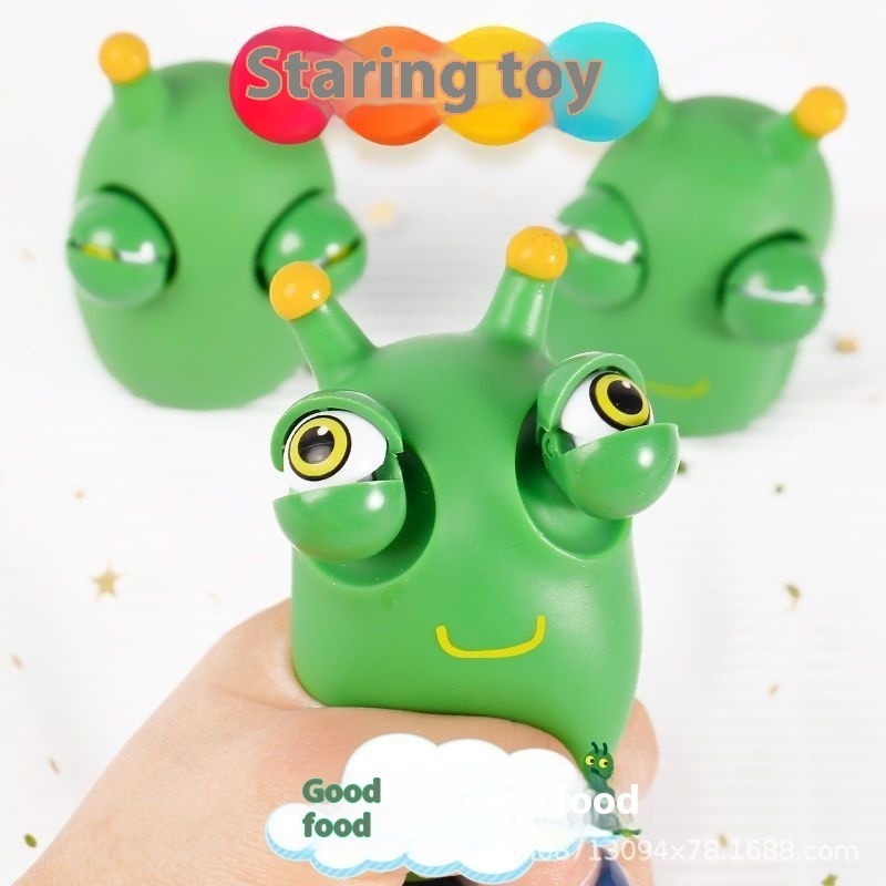 Strange Eye-popping Vegetable Worm Staring Toy Decompression Toy Pinch Music Squeeze Worm Vent Decompression Toy