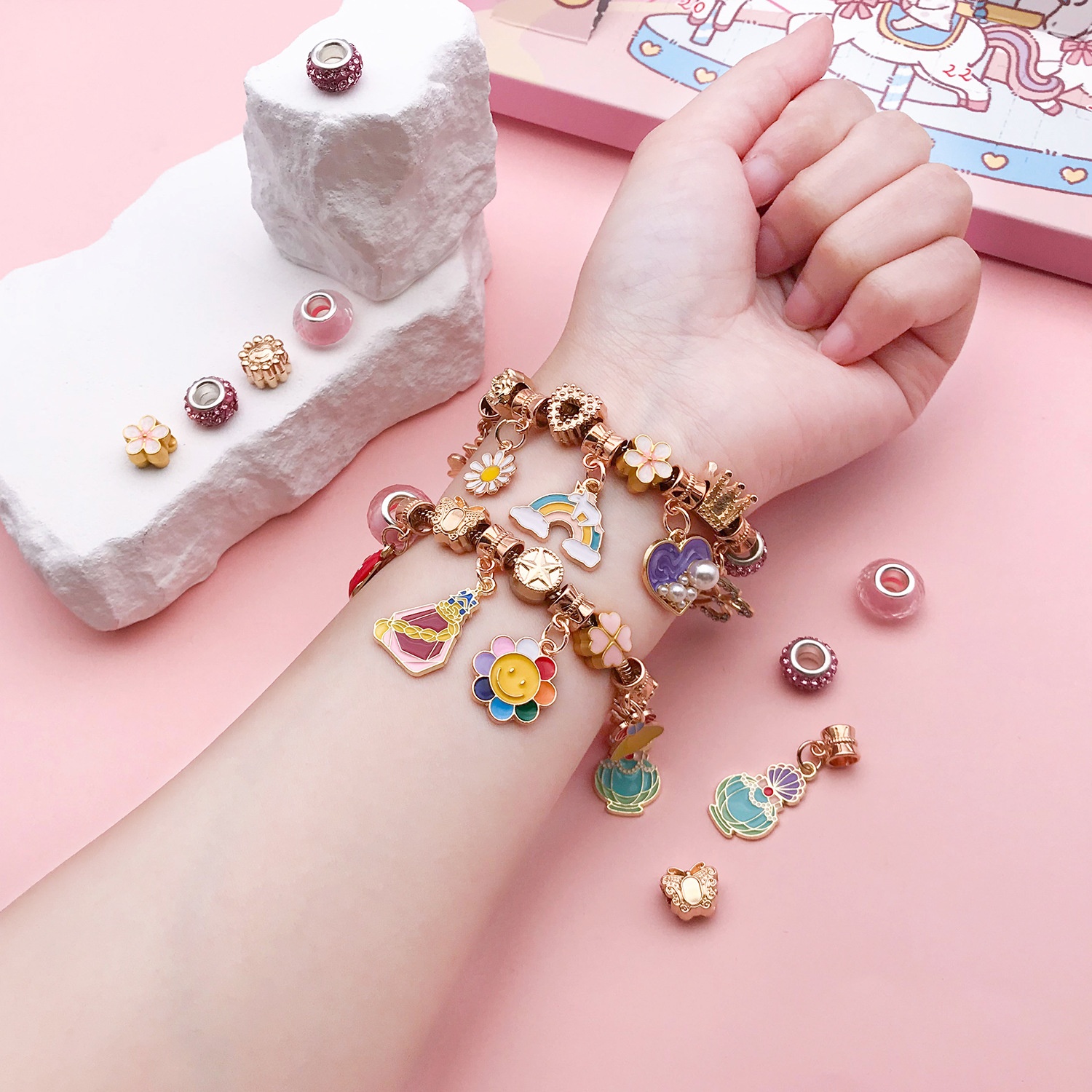 Children's Day Shake Tone Taobao Daifa Puzzle Handmade Crystal DIY Beaded Bracelet Suit For Girls Gift