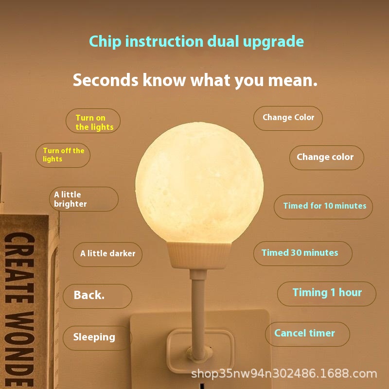 Intelligent Voice Control Voice Control Night Light Eye Protection Nursing Bedroom Sleep Usb Plug Power Grid Red Moon Night Light
