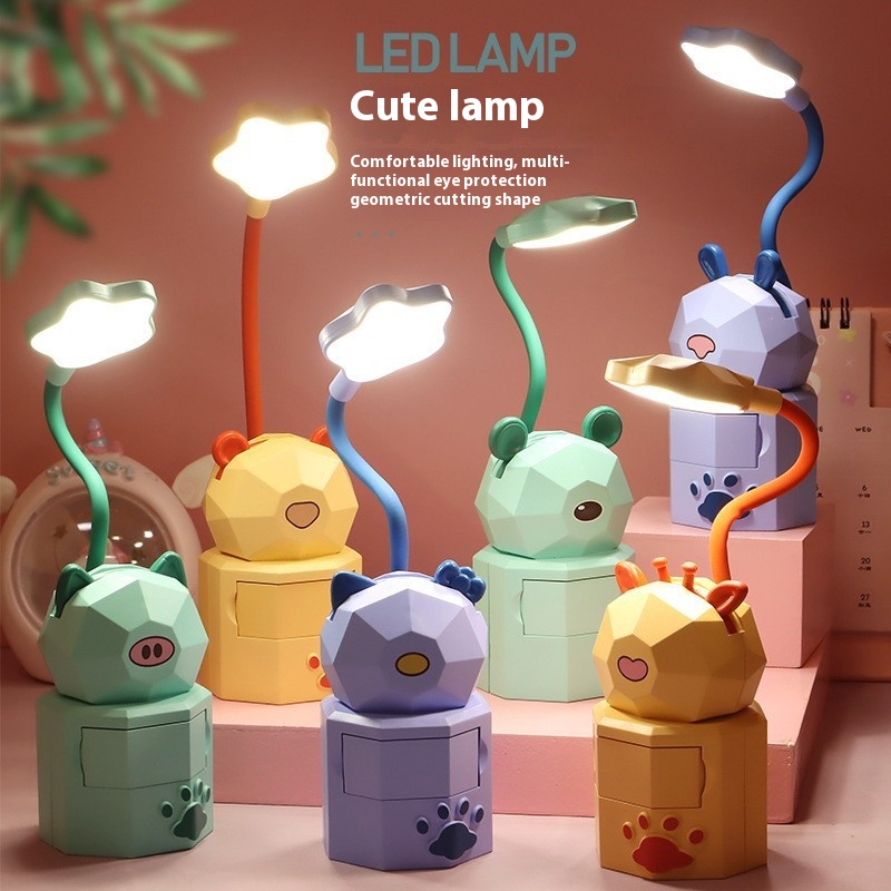 Foreign Trade Cartoon Cute Pet Rechargeable Table Lamp USB Folding Eye Protection Learning Desk Lamp Bedroom Bedside Lamp Night Light