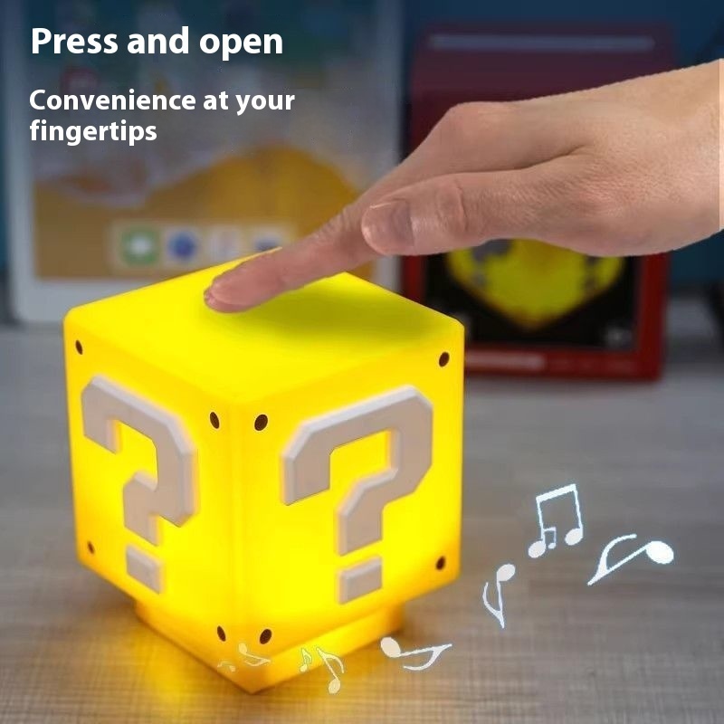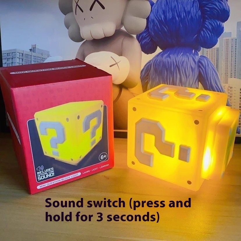 Mario LED Question Mark Light Square Super Mary Sound Night Light Desktop Atmosphere Table Lamp Decorative Bedside Lamp