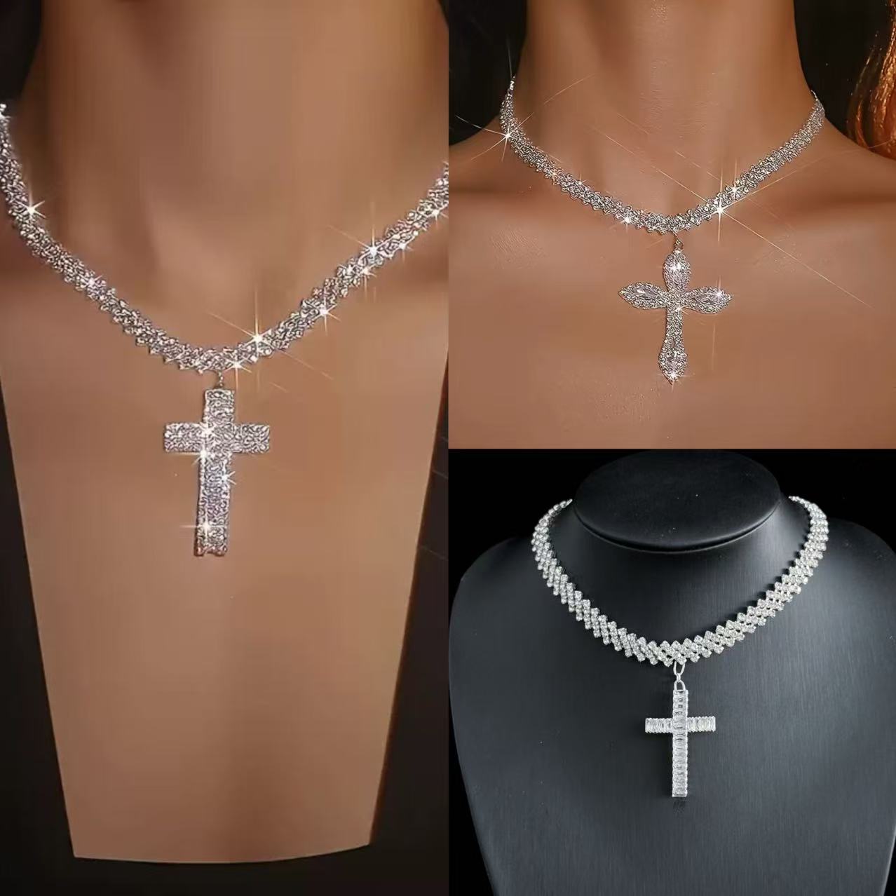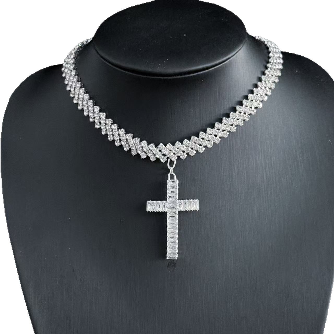 Cross Border Diamond Bohemian Fashion Women Necklace Rhinestone Cross Pendant Shiny Rhinestone Beach Necklace
