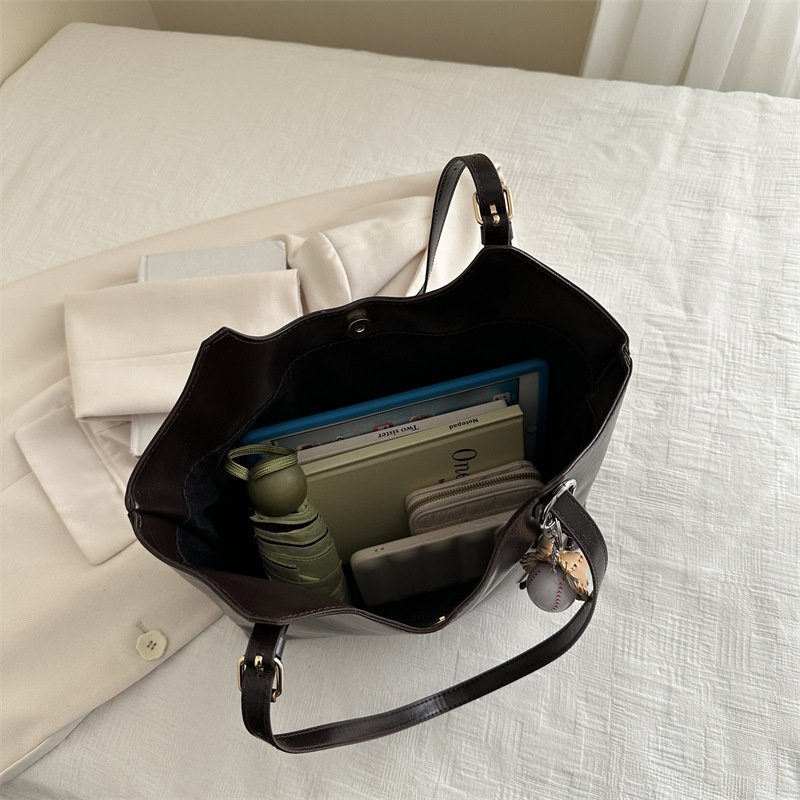 Vintage Soft Leather Tote Bag Women's Large Capacity Spring High-end Women's Bag Simple Work Commuter Shoulder Bag
