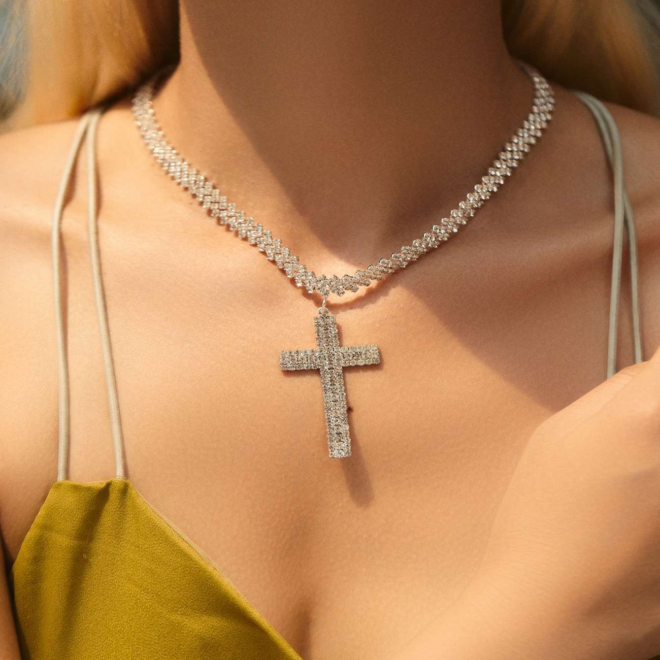 1 Piece European And American Fashion Popular Style Full Diamond Cross Pendant Clavicle Chain Ladies Necklace