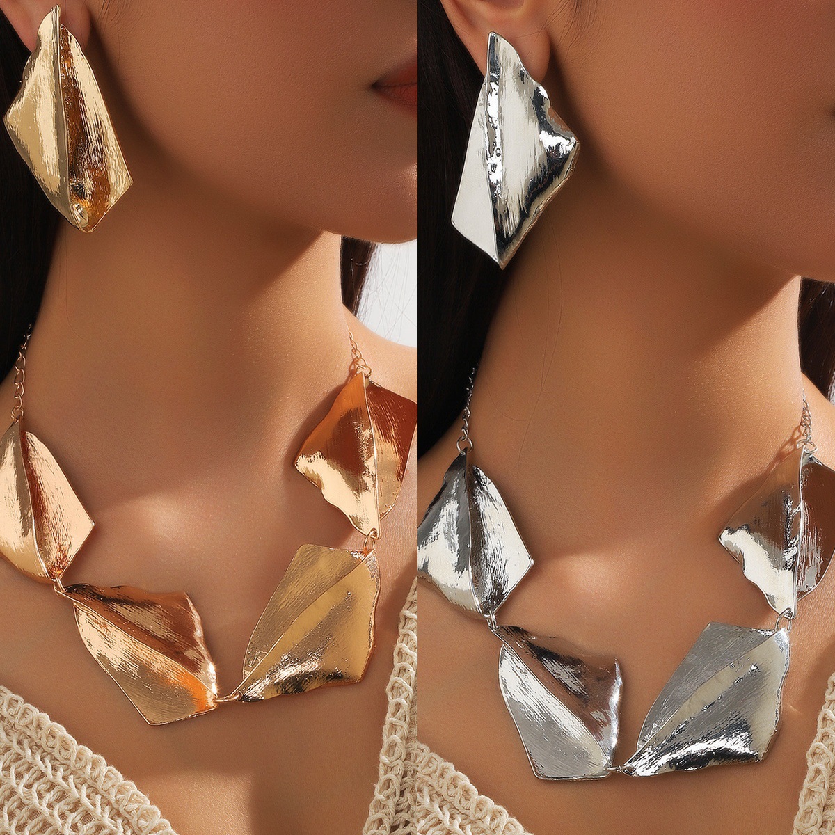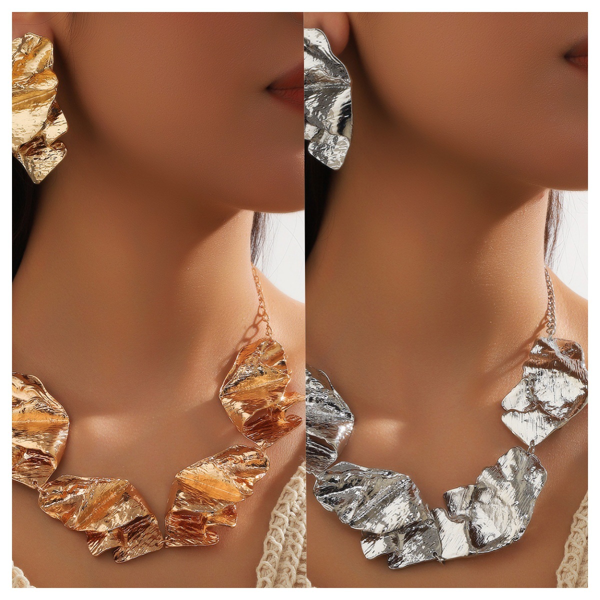 European And American Retro Style Irregular Personality Pleated Geometric Clavicle Chain Exaggerated Niche Suitable For Girls