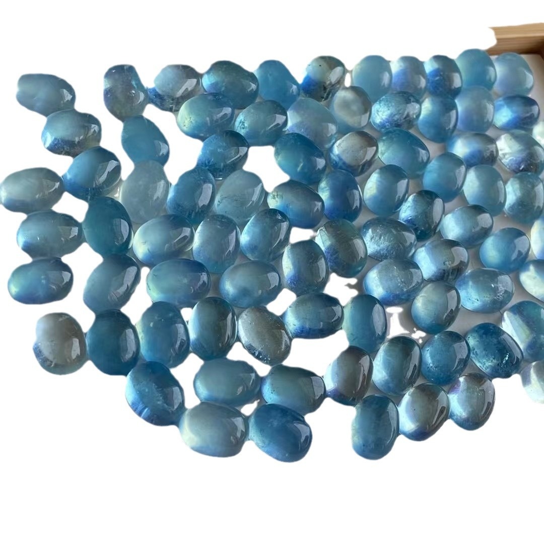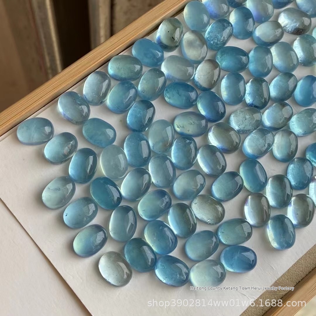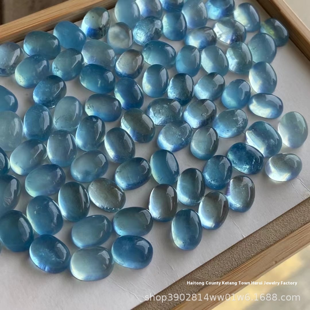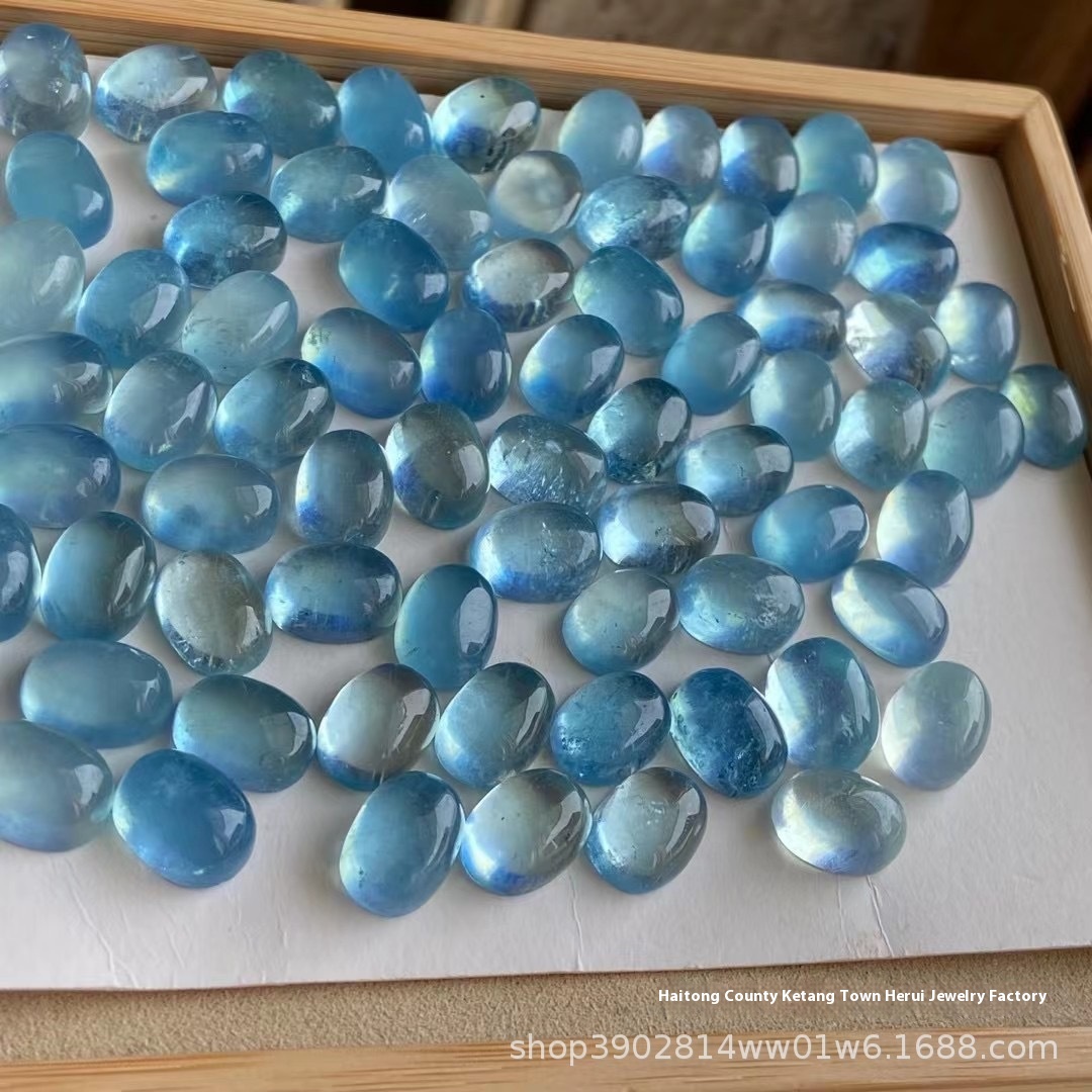 Natural Aquamarine Oval Ring Surface Bare Stone Crystal Transparent Color Bright DIY Inlaid Stone Aquamarine Ring Surface