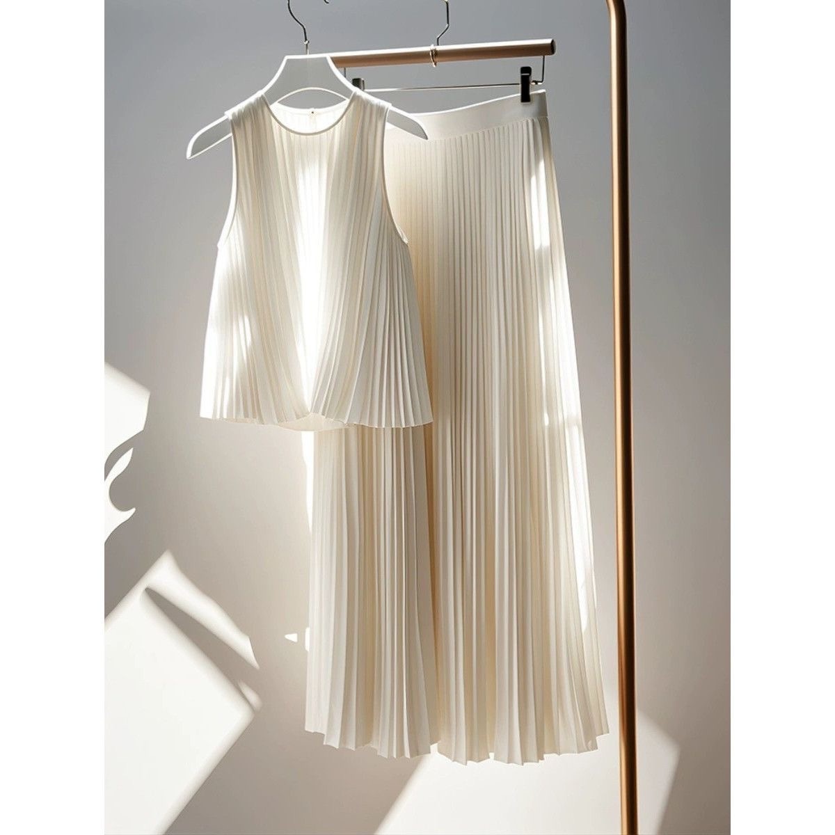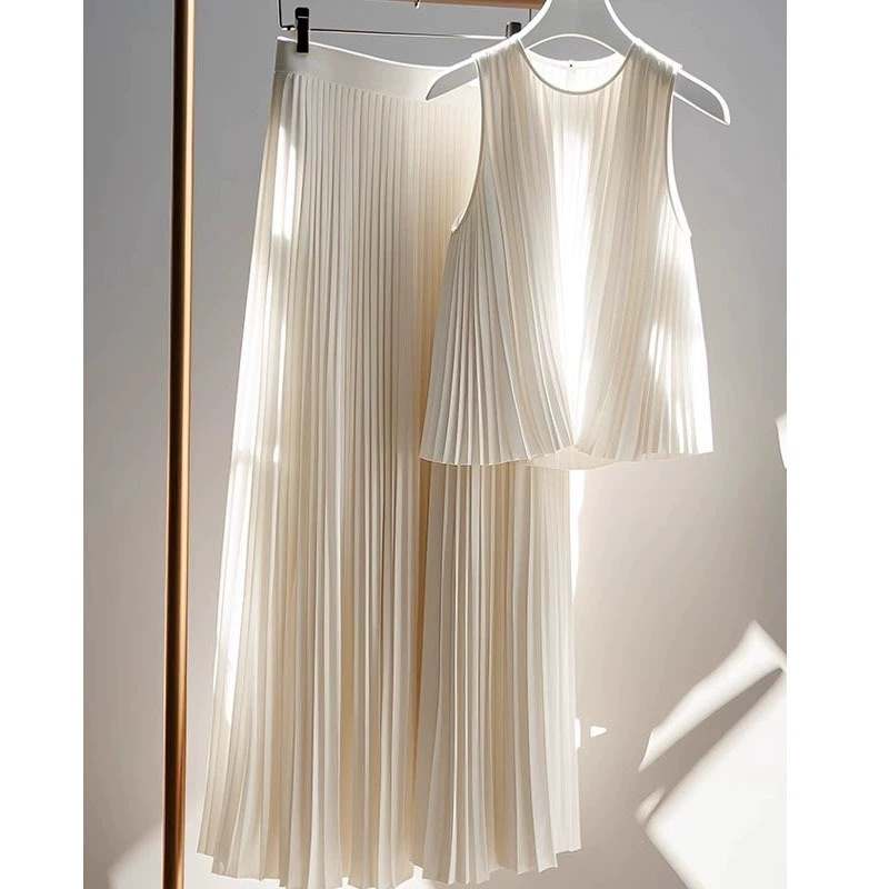 This Year's Popular Beautiful Pleated Suit Women's Summer High-end Sense Temperament Top Skirt Two-piece Set