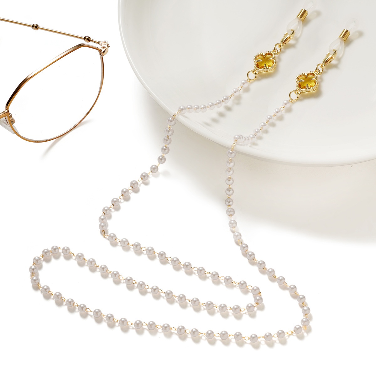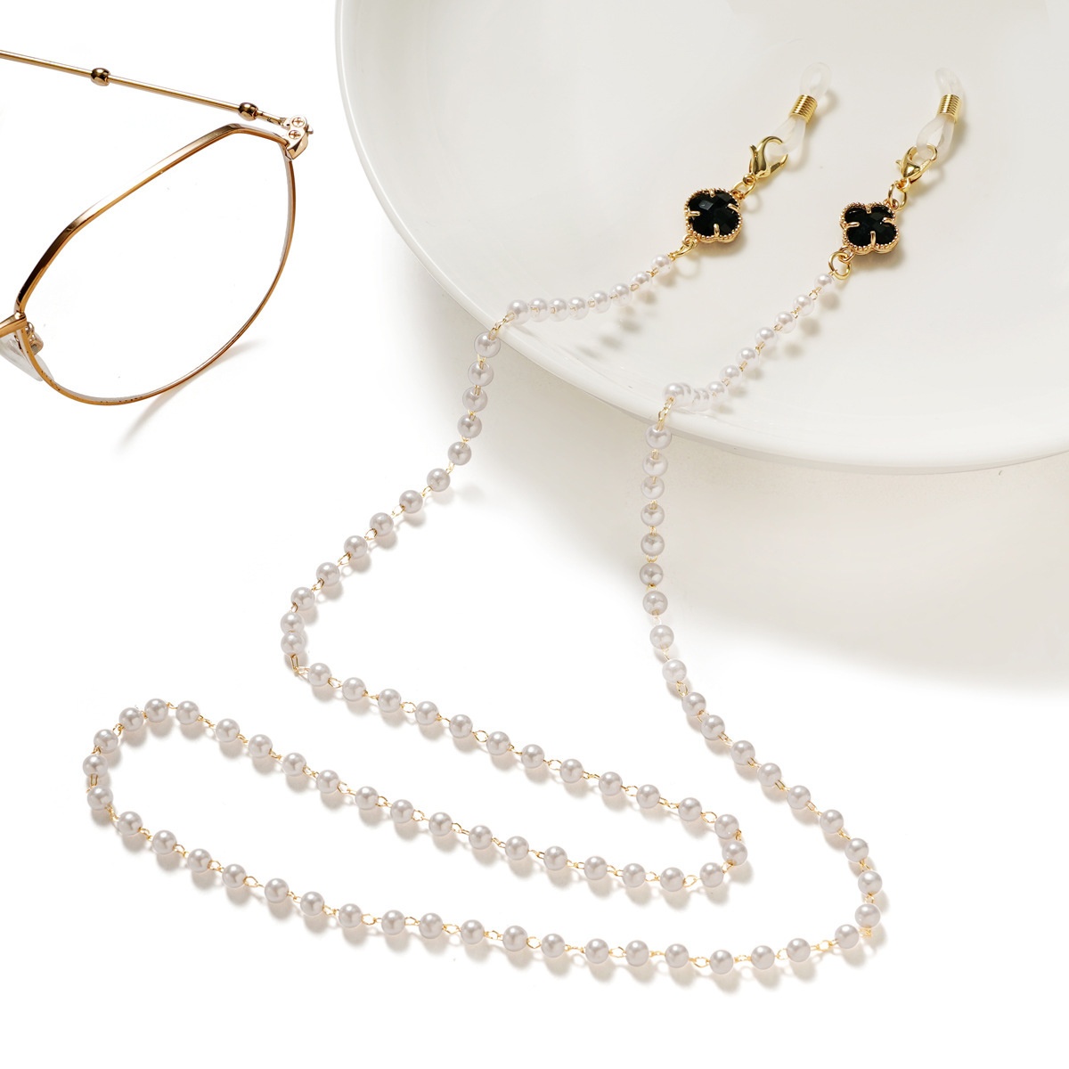 European And American Simple Glasses Chain Glass Pearl Sunglasses Hanging Chain Personality Popular Four-leaf Clover Mask Chain Men And Women