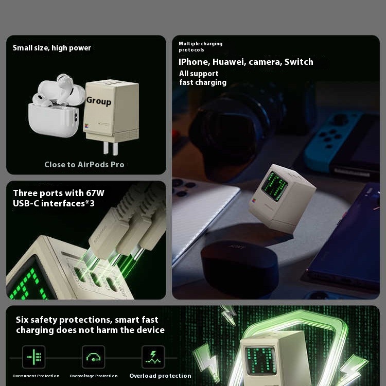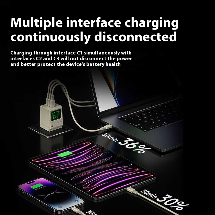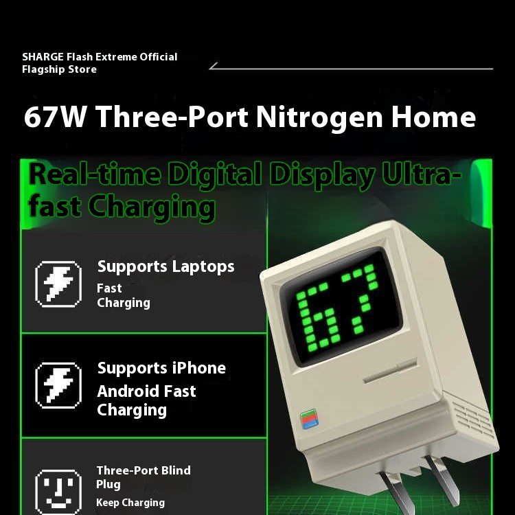 Flash 67W Multi-port Continuous Charging Dual Gallium Nitride Charger 65W For Apple 15 Laptop Macboo