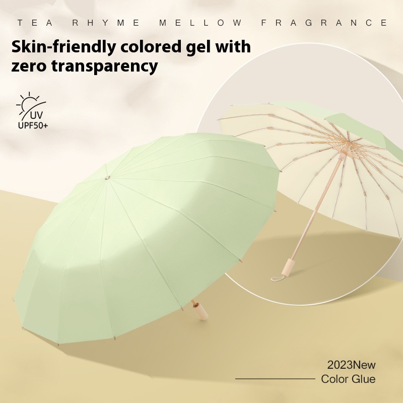 16-Bone Three-Fold Sunshade Umbrella Exlarge Windproof Sunshade Umbrella Sun Umbrella Sunscreen UV Protection Women's Folding Sunny And Rainy Umbrella