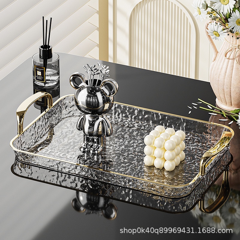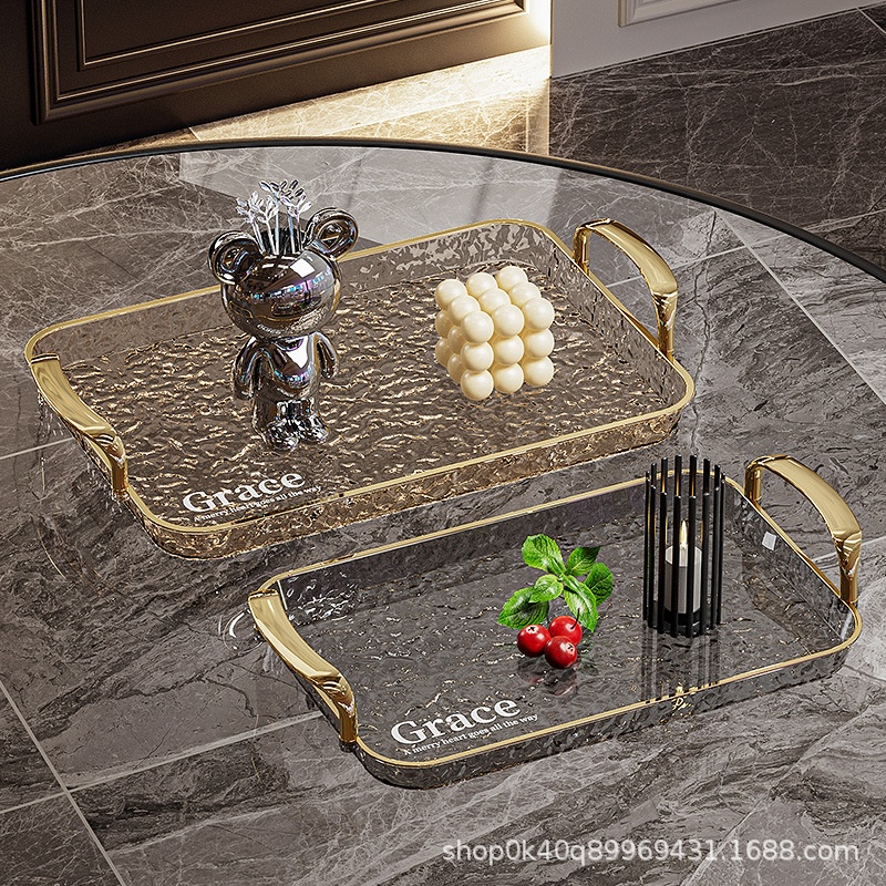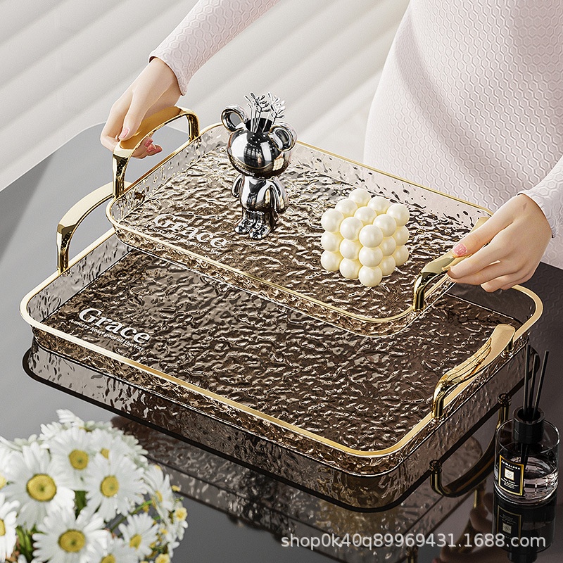 High-end Light Luxury Plastic PET Tray With Handle For Party Household Restaurant High-end Tray Drop-resistant Water Cup Storage Tray