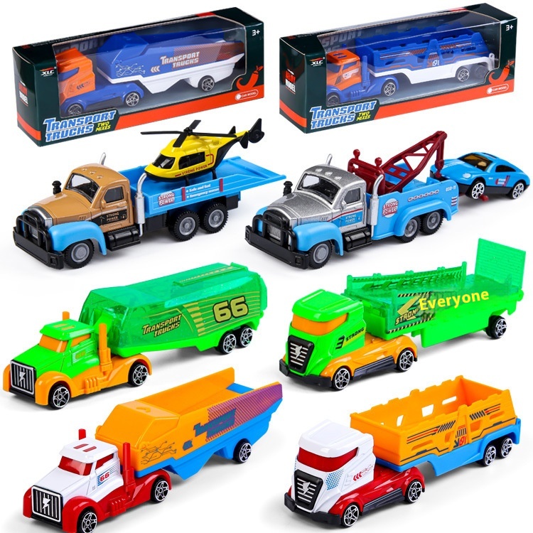 Boy Alloy Toy Car Children's Toy Retro American Trailer Sliding Sci-fi Container Car Model