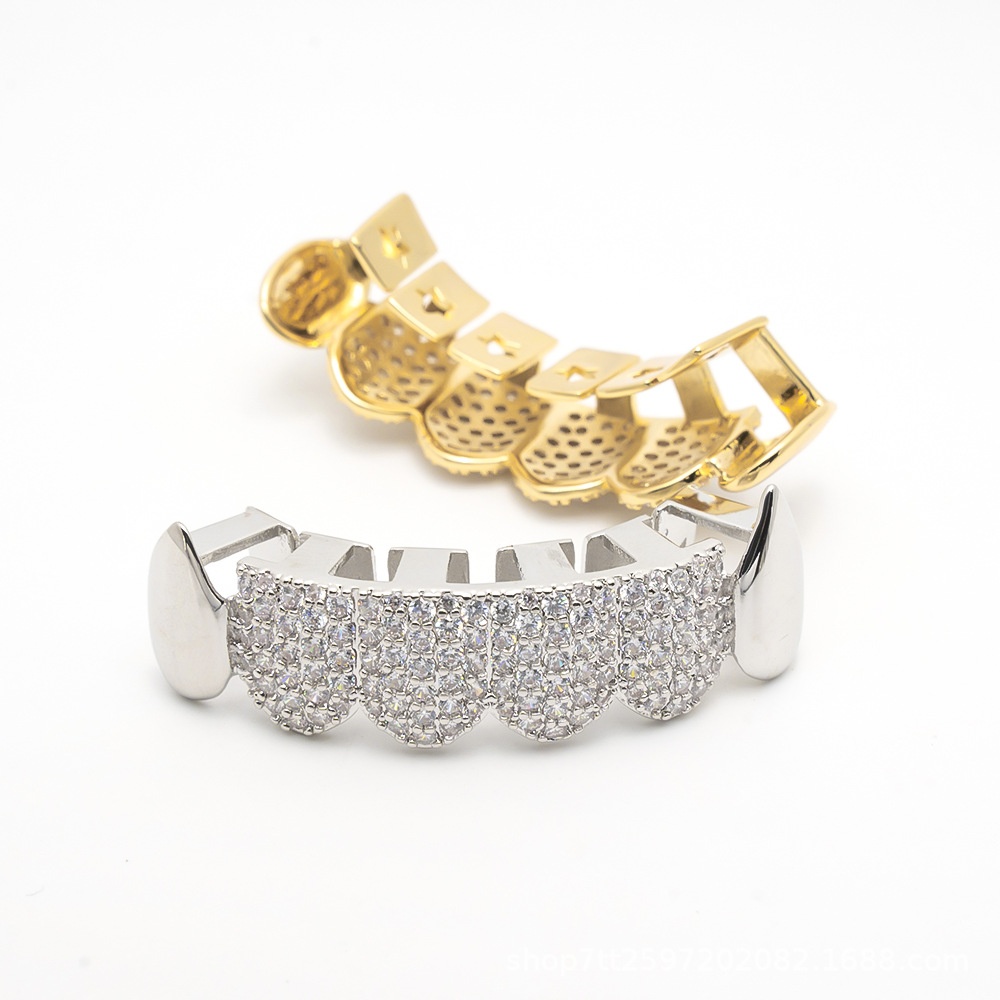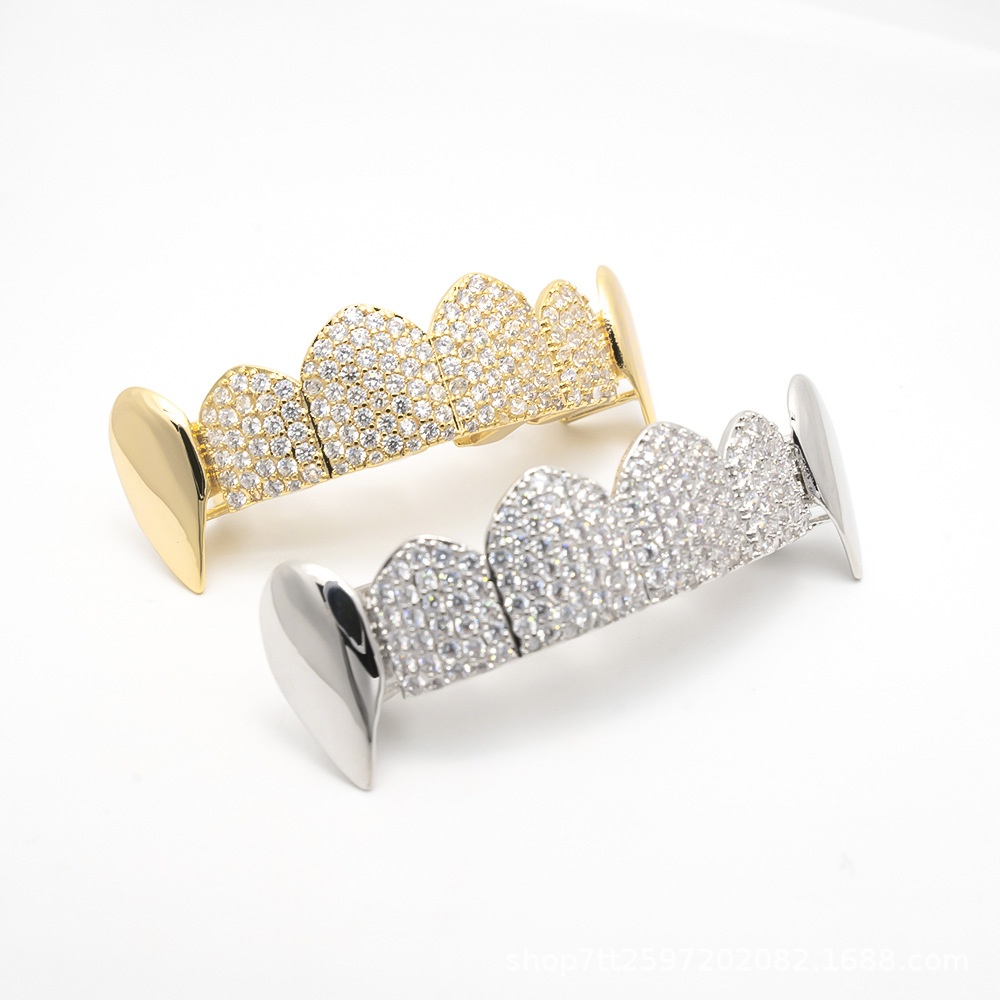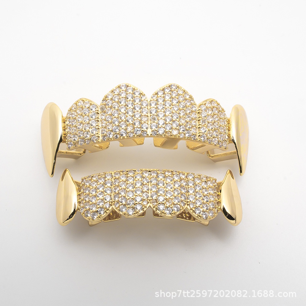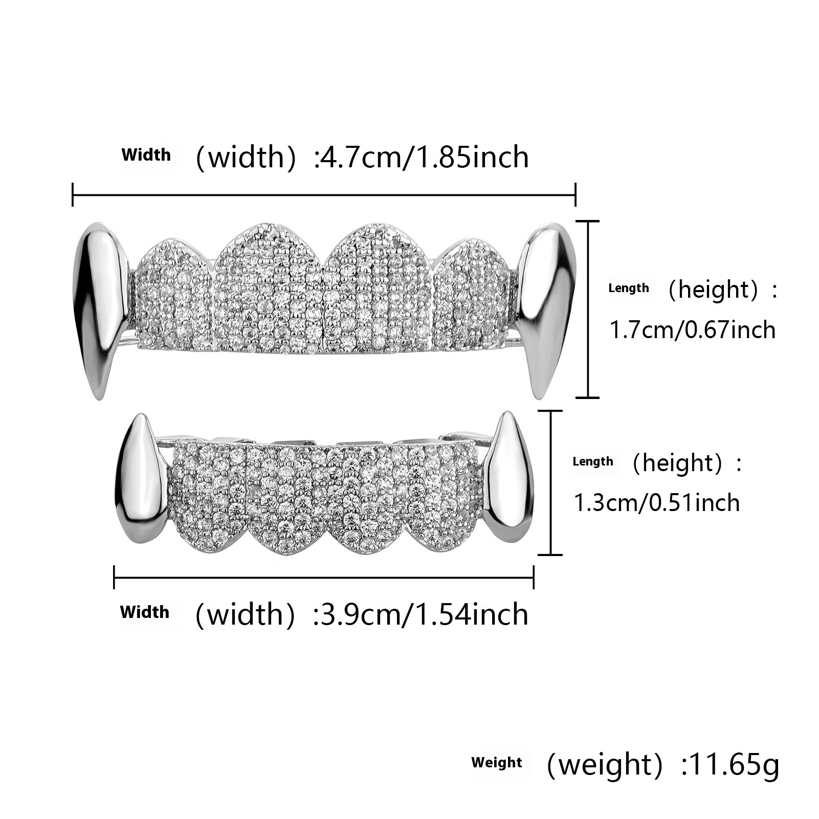 European And American Style Vampire Fangs Personality Double Zircon Braces Hip-hop Men's Nightclub Special Teeth Explosions