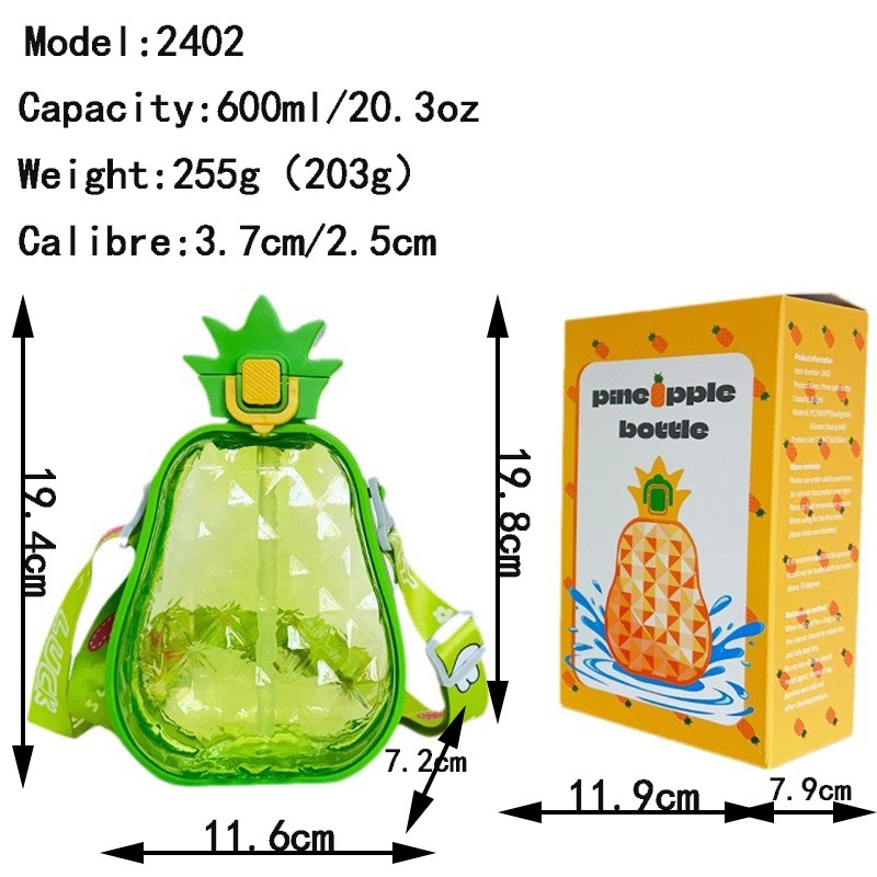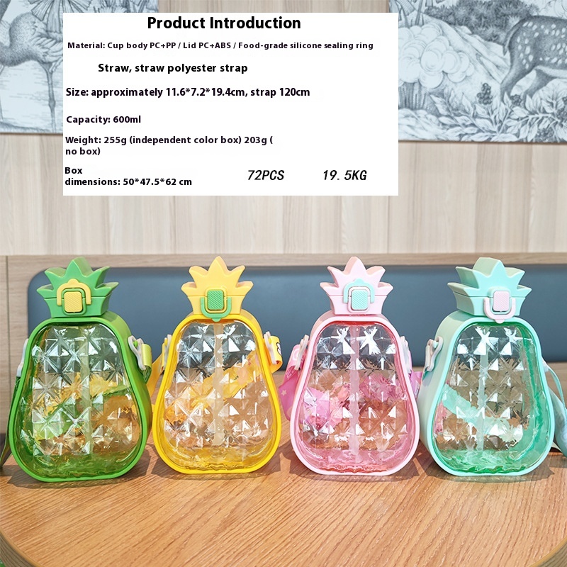 Creative Cute High-value Pineapple Straw Plastic Water Cup Portable Strap Children's Outdoor Sports Water Bottle