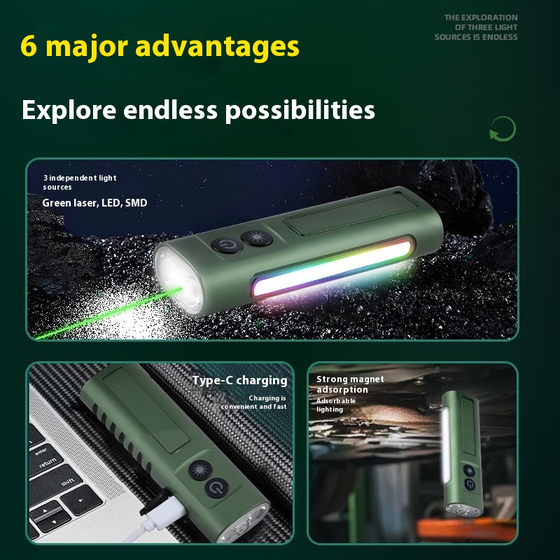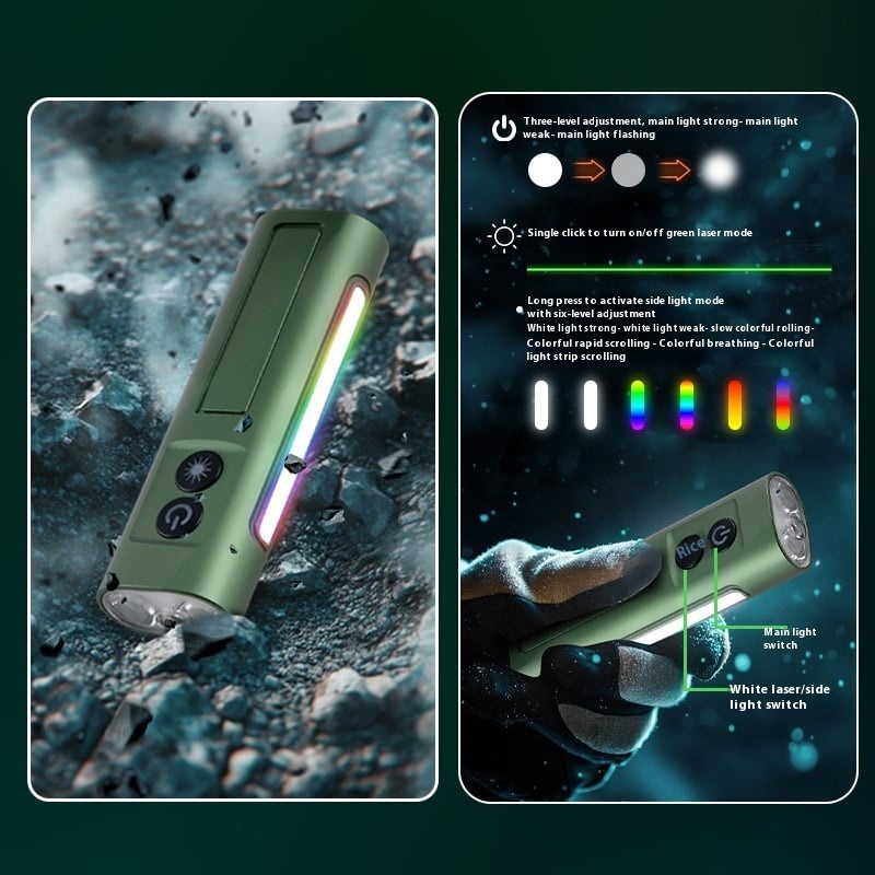 Pt-01 Green Laser Multi-Function Strong Light Aluminum Alloy Flashlight With Magnetic Side Light