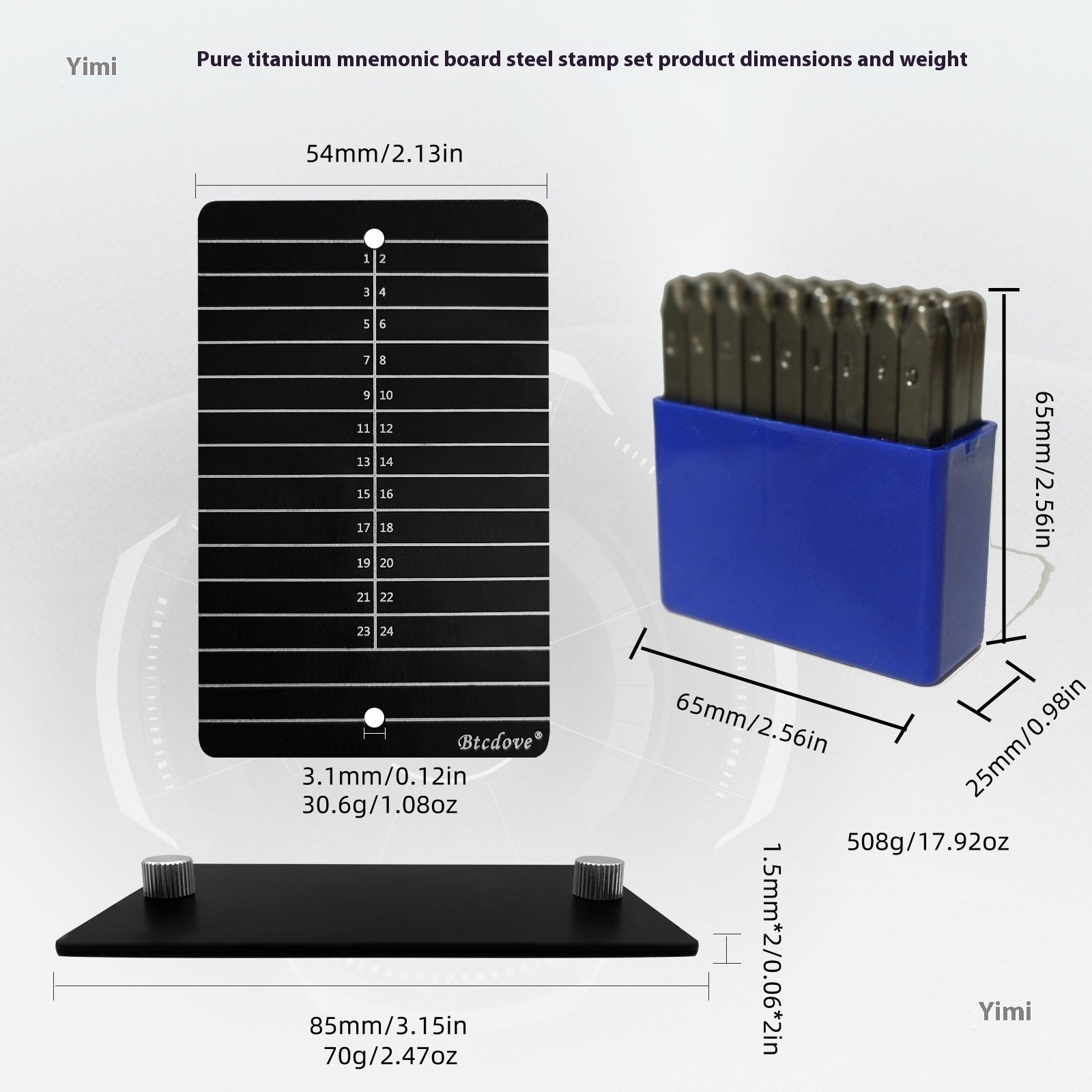 Mnemonic Steel Plate, Blunt Titanium Material, Double Plate Set (without Tools) 1.5mm Thickened, Can Be Engraved