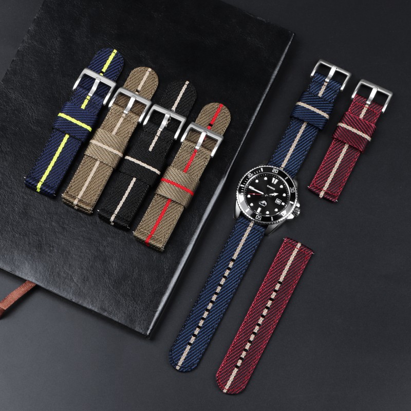 Quick Release Nylon Canvas Watch Strap Breathable Stripe 60's French Force Parachute Bag Strap 20mm22mm