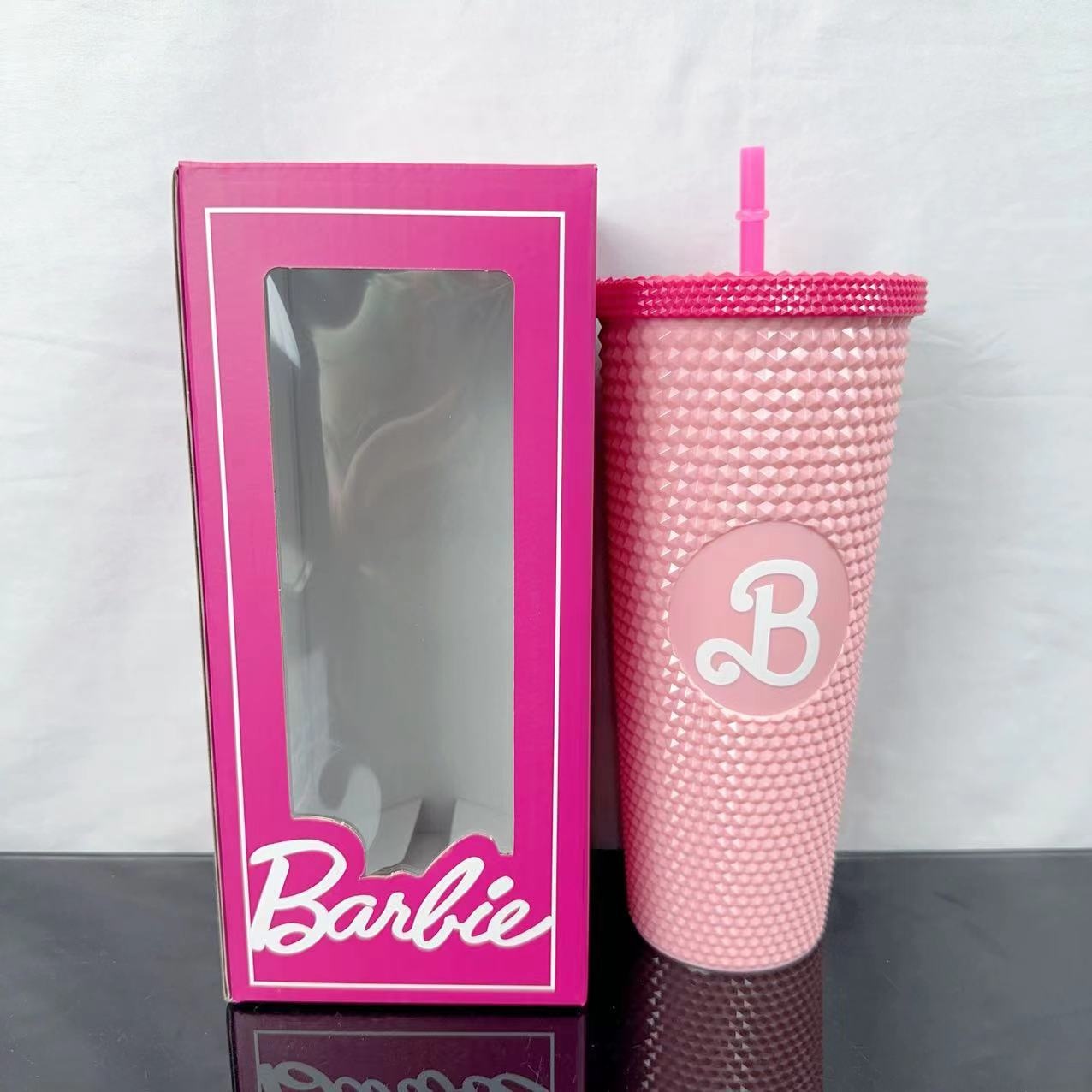 Barbie Color Box Double-layer Plastic Pipette Cup Water Cup Durian Cup 710ml Plastic Water Cup With Lid