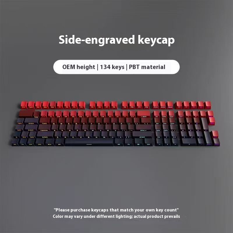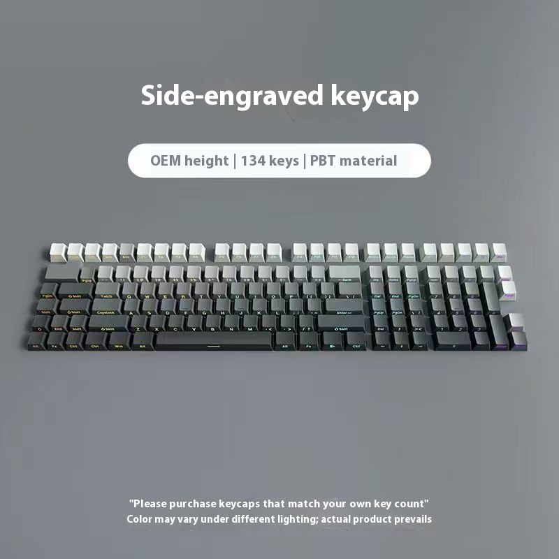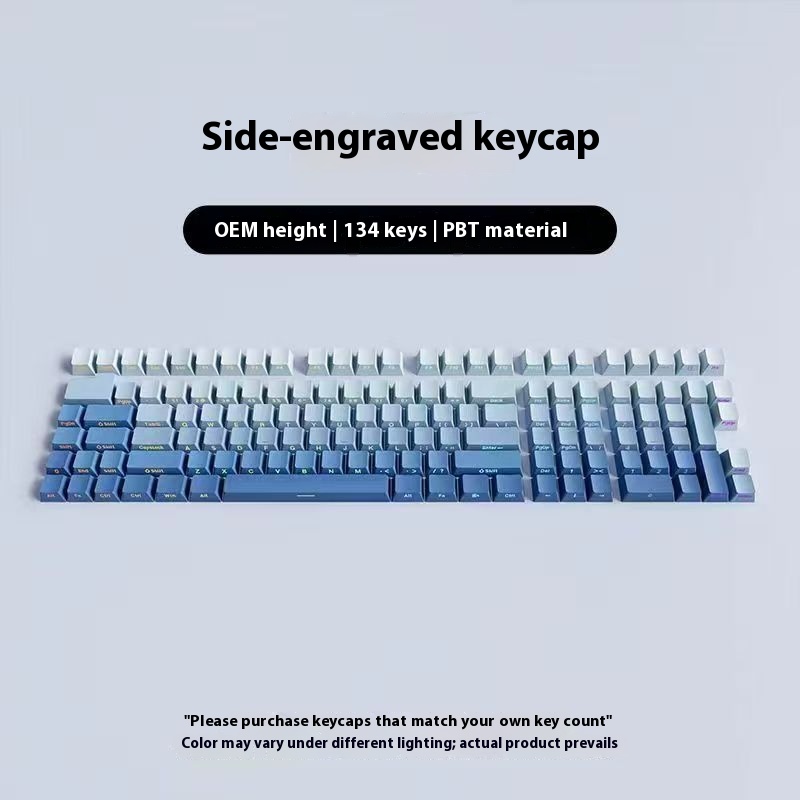 Side Engraved Gradient Transparent Key Cap PBT Micro Sand Surface 134 Key Large Full Set Of Six-color Gradient Personality Fit Mechanical Key