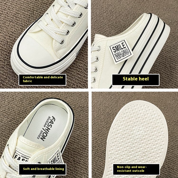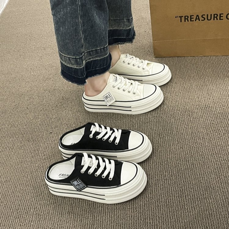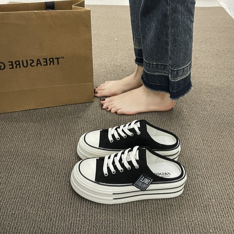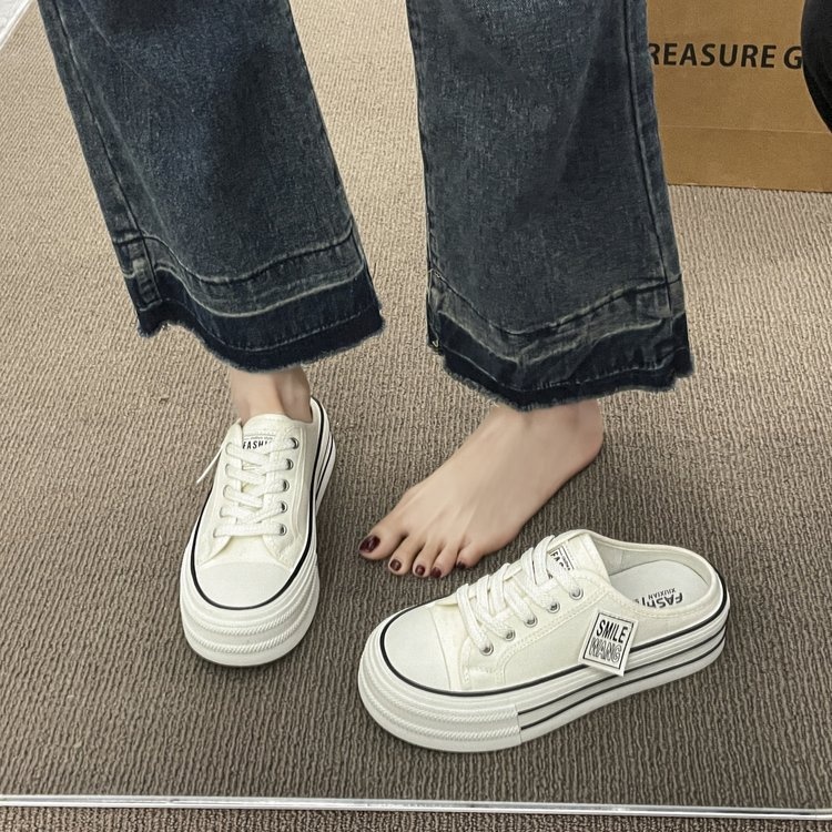 Canvas Half Slippers Women's Summer Outer Wear Internet Celebrity Hot High-grade Thick Bottom Height Increase No Heel Lazy