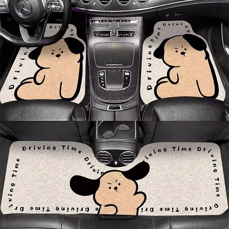 Cartoon Universal Car Floor Mats, Mud Scraping And Dirt Scraping Wire Ring Floor Mats, Stain-Resistant And Easy To Care For, Anti-Slip Mats, Three-Piece Set Of Floor Mats