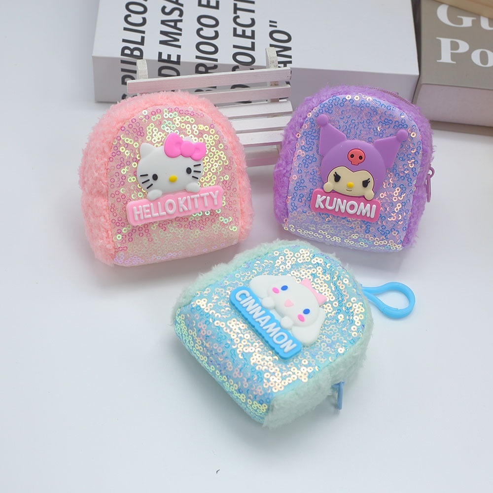 Colorful Sequin Coin Purse Cartoon Cute Mini Children Plush Small Bag Keychain Pendant Headset Storage