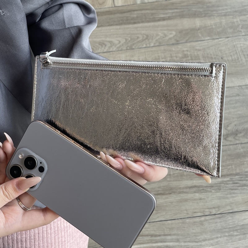 Genuine Leather Long Wallet Women's Fashion Silver Wallet Head Layer Cowhide Mobile Phone Bag Simple And Generous Niche