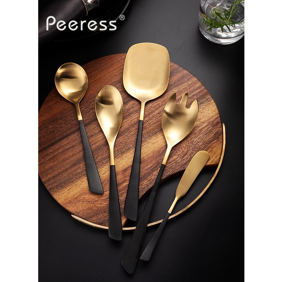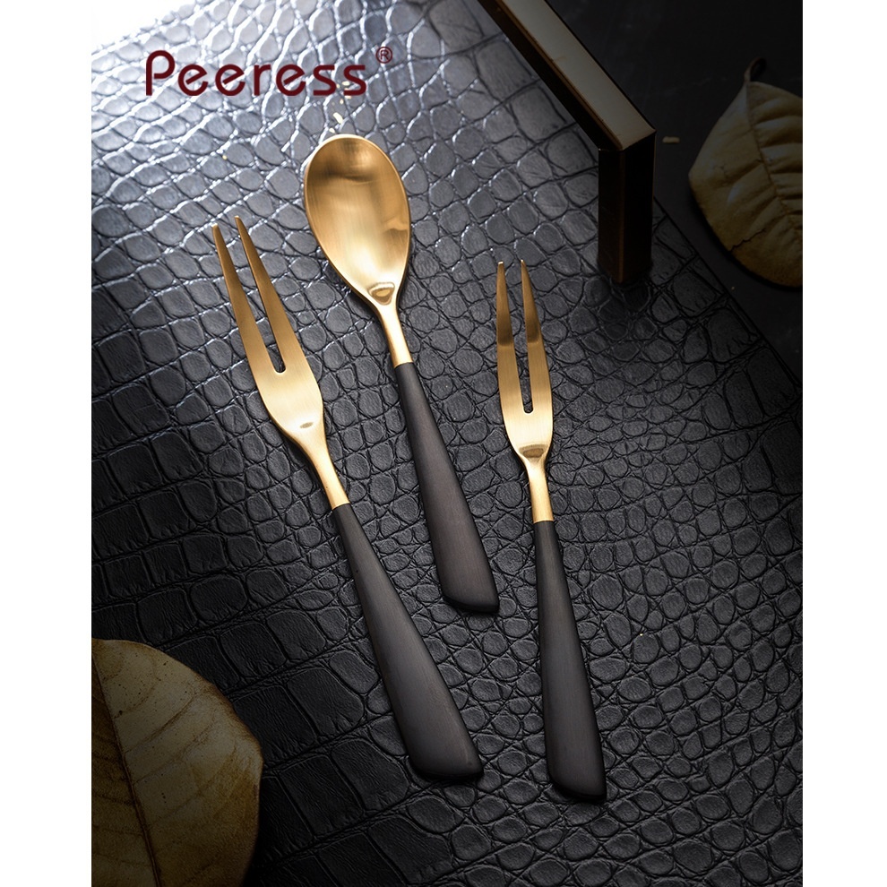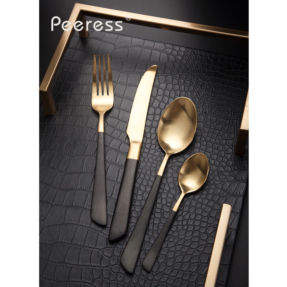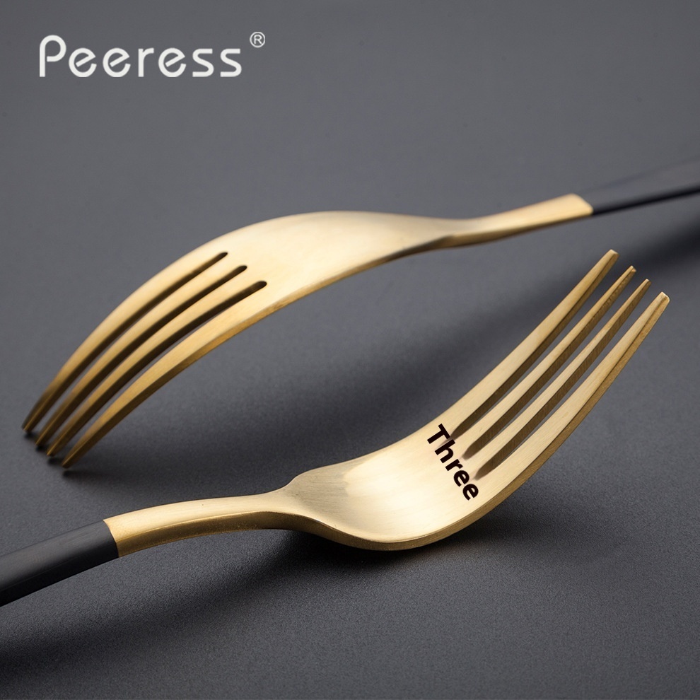 QH308 European Style Sanding Black Gold Stainless Steel Knife And Fork Spoon Service More Fork Fruit Fork Western Food Tableware