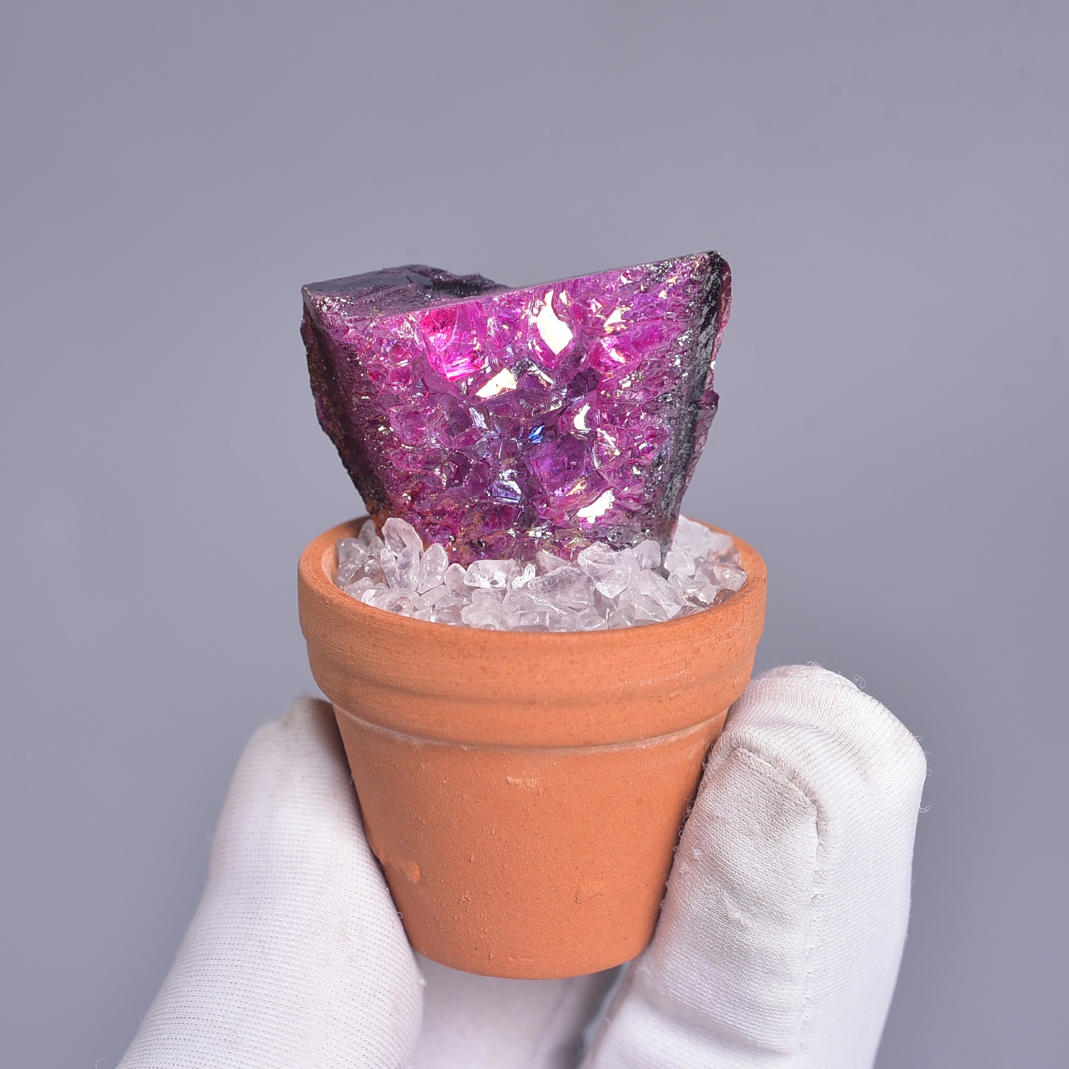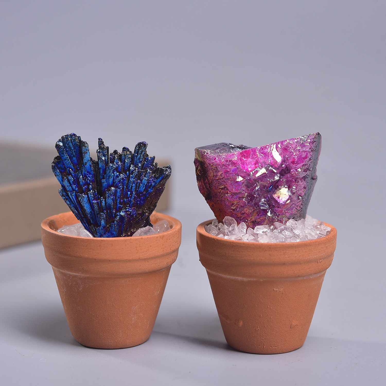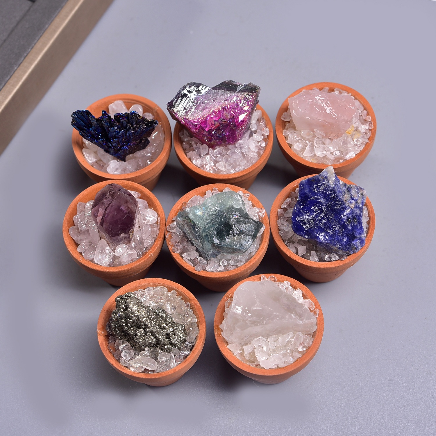 Natural Crystal Raw Stone Ore Potted Ornaments Crystal Gemstone Mineral Standard Home Desktop Car-Mounted Artificial Ceramic Pot Ornaments