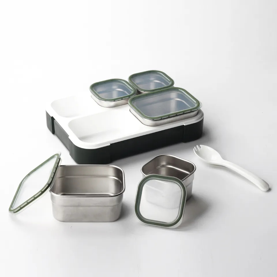 5-grid Stainless Steel Lunch Box Work Student Lunch Box Modern Simple Office Worker With Ulation Bag 1000ml
