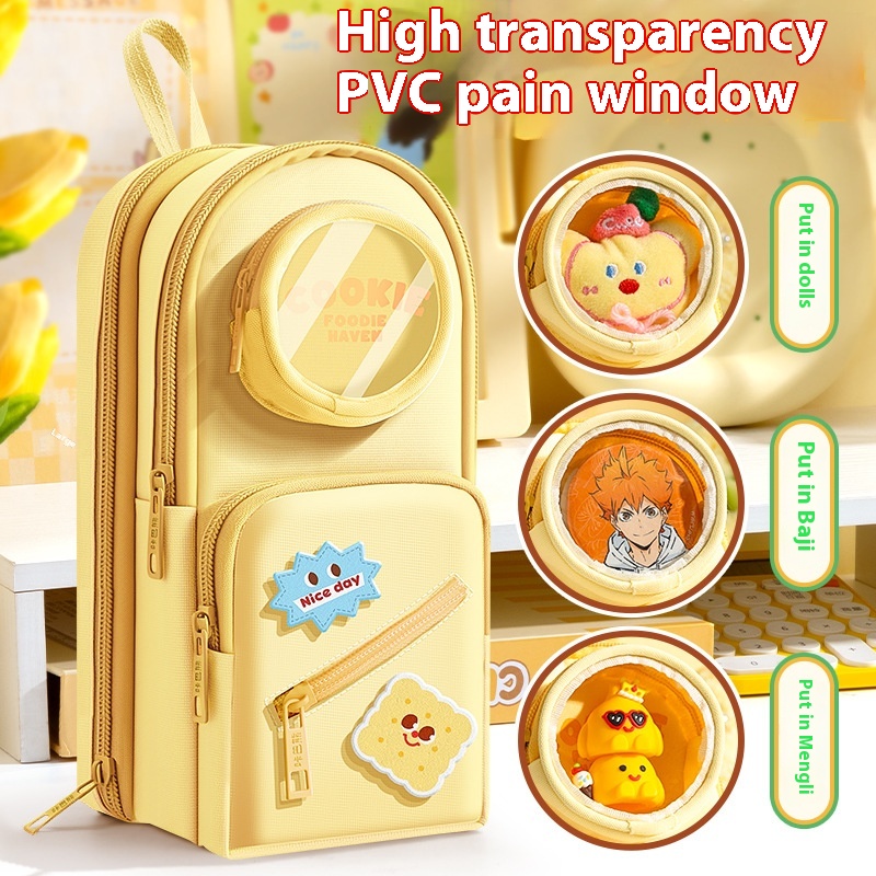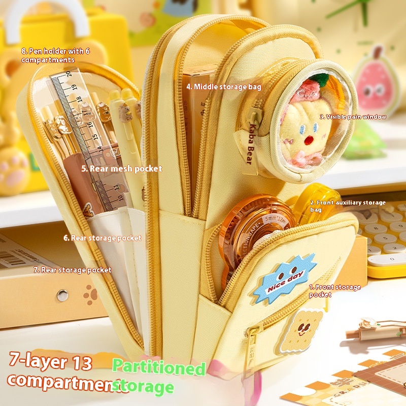 咔巴熊魔术贴书包笔袋高颜值卡通学生文具收纳袋多功能大容量笔袋