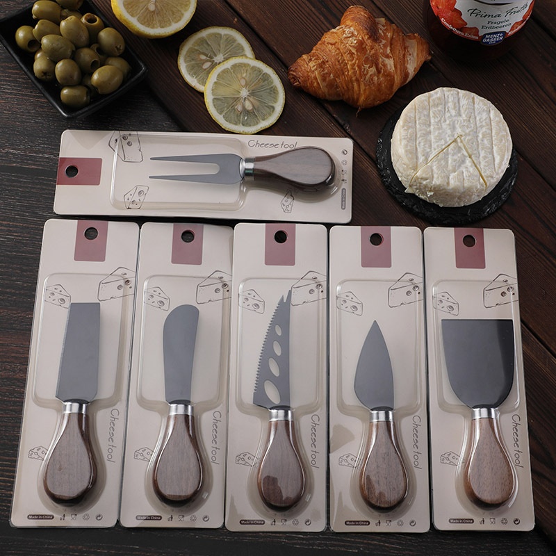 Black Walnut Handle Cheese Knife Cake Stainless Steel Kitchen Tableware Butter Black Blade Cheese Tool Home