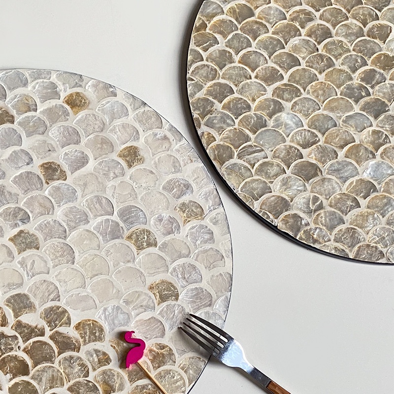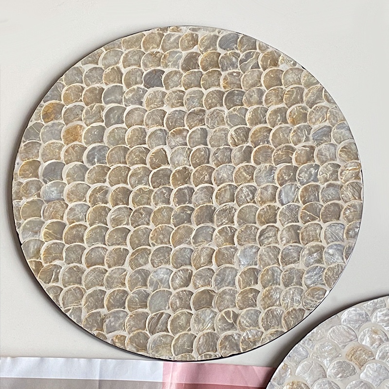 American Style Rattan Round Shell Creative Storage Household Living Room Coffee Mat Light Luxury Retro Tray Round
