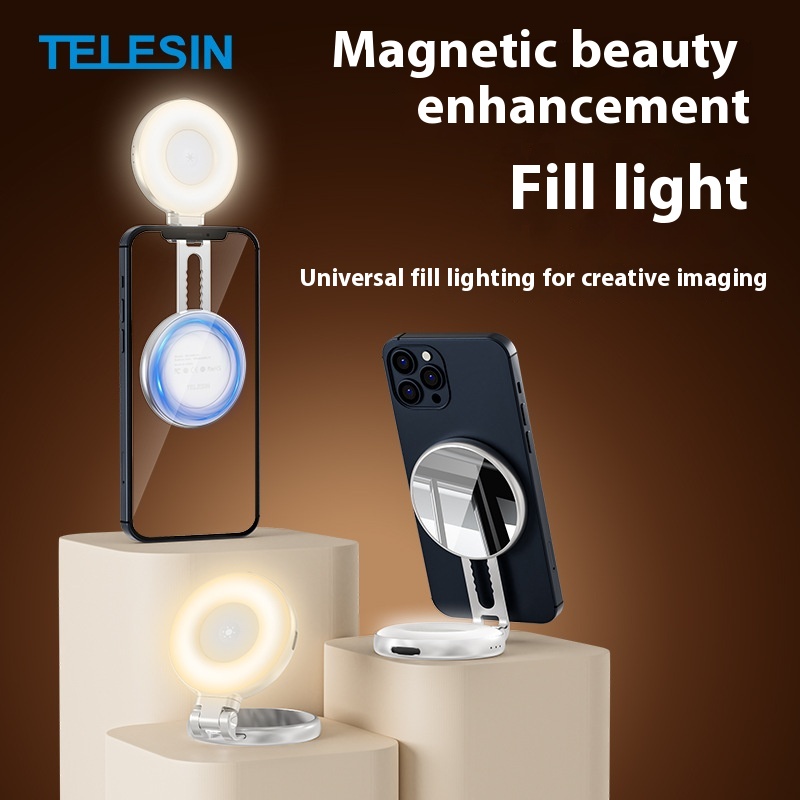 Taixun Mini Mobile Phone Magnetic Beauty Fill Light Three Color Temperature Portable Selfie Mirror Rotating Stretch Pocket Lamp