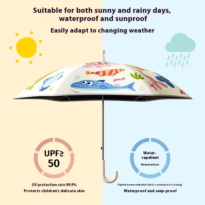 Children's Umbrella Rounded Roller Large Male And Primary School Students Stab-proof Girl Black Glue Sunny And Rain Dual-purpose Straight Umbrella