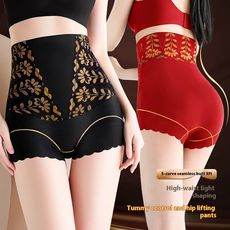 High Waist Lace Belly-Tucking Underwear Women's Underwear Lace-up Cotton Underwear Postpartum Hip-up Waist Shaping Pants